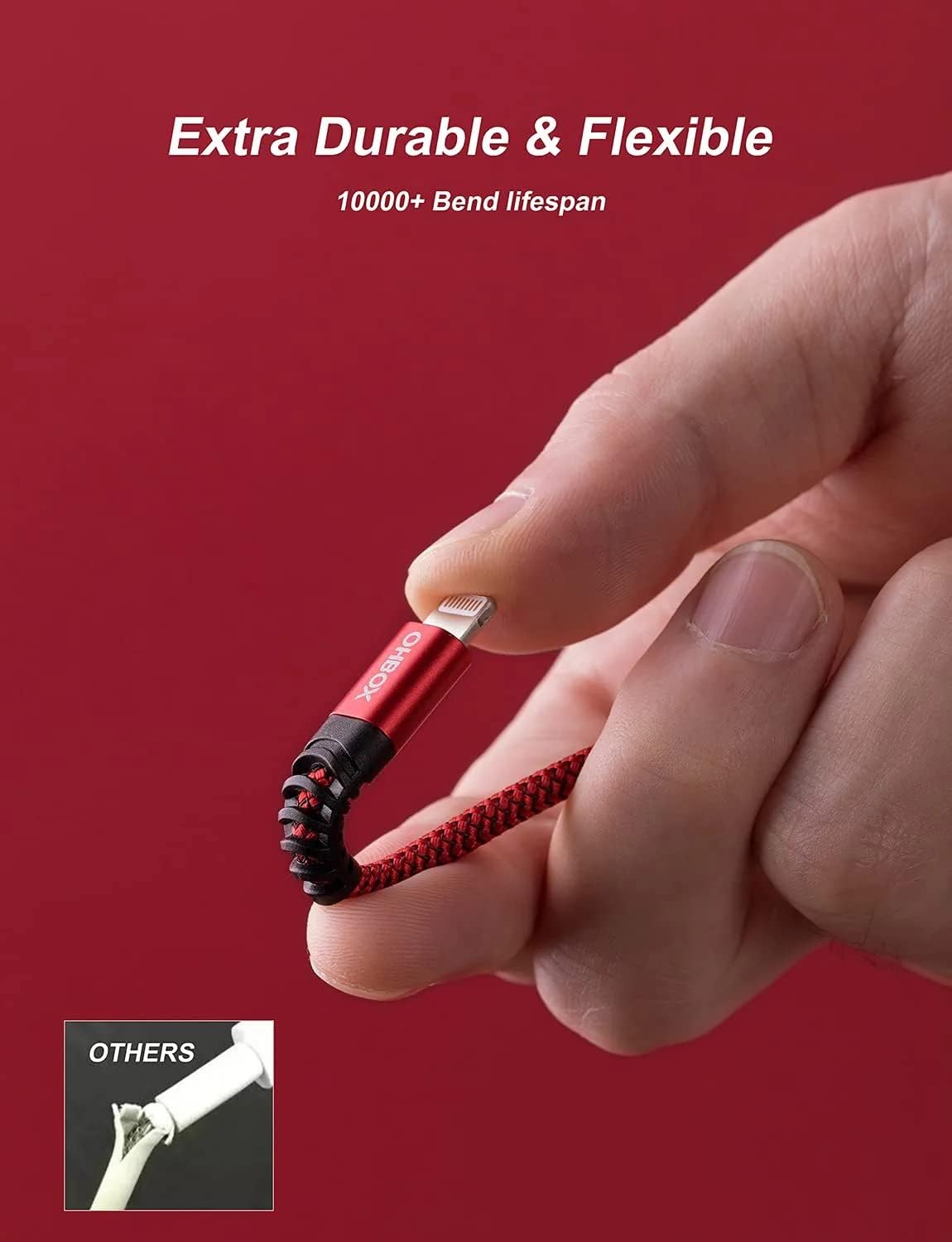 • Super Durable iPhone Cable: The nylon braided fire wire is made of high quality material and has superb quality assurance. This nylon braided iPhone charging cable has been bent and tested over 40,000 times for greater durability and strength. It can withstand daily connection needs and use long term.