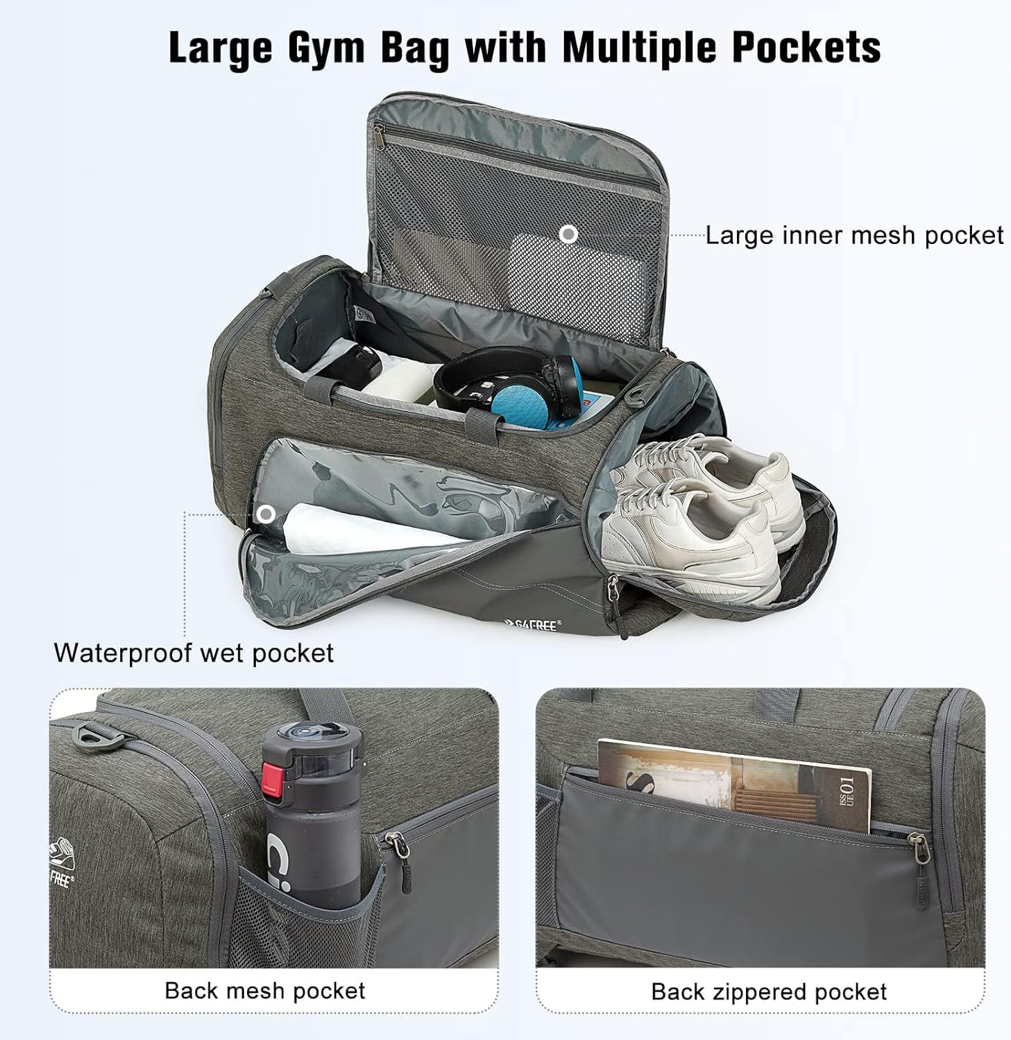 G4Free 45L/60L 3-Way Duffle Backpack Gym Bag with Wet Pocket & Shoes Compartment Sports Travel Weekender Overnight Duffel Bag