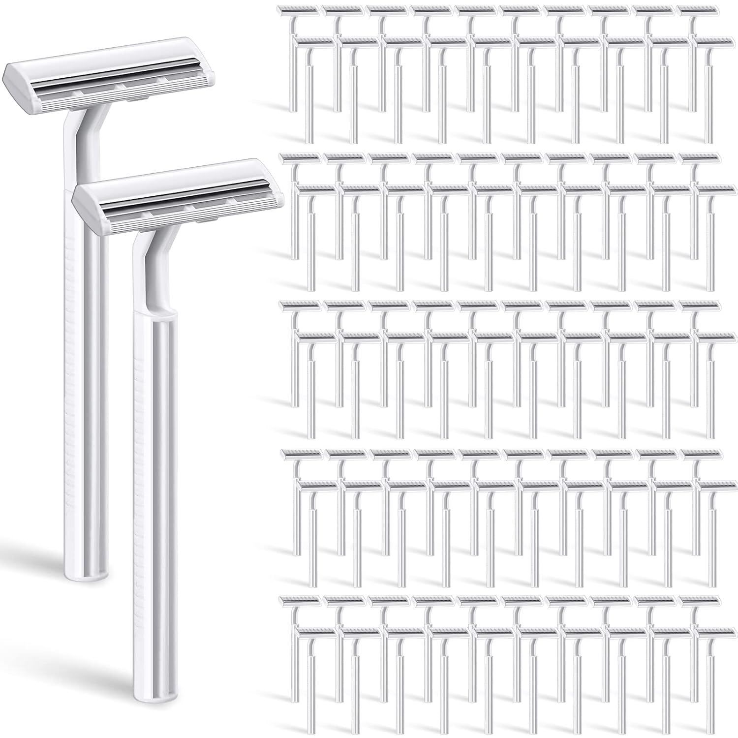 100 Pieces Disposable Razors Bulk for Women Individually Wrapped Twin Blades Shaving Razor Women Razors for Shaving Safety Hotel Guest House Travel Home Use Portable, White
