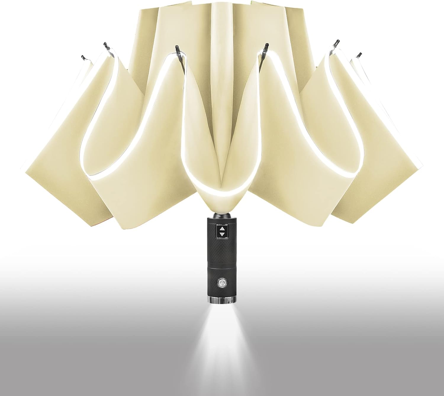 Lejorain Inside Out Umbrella Folding - Inverted LED Umbrellas Automatic Open and Close - Women Rain Umbrella Reverse Folding