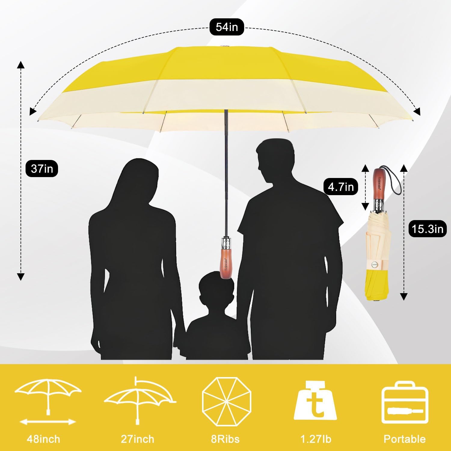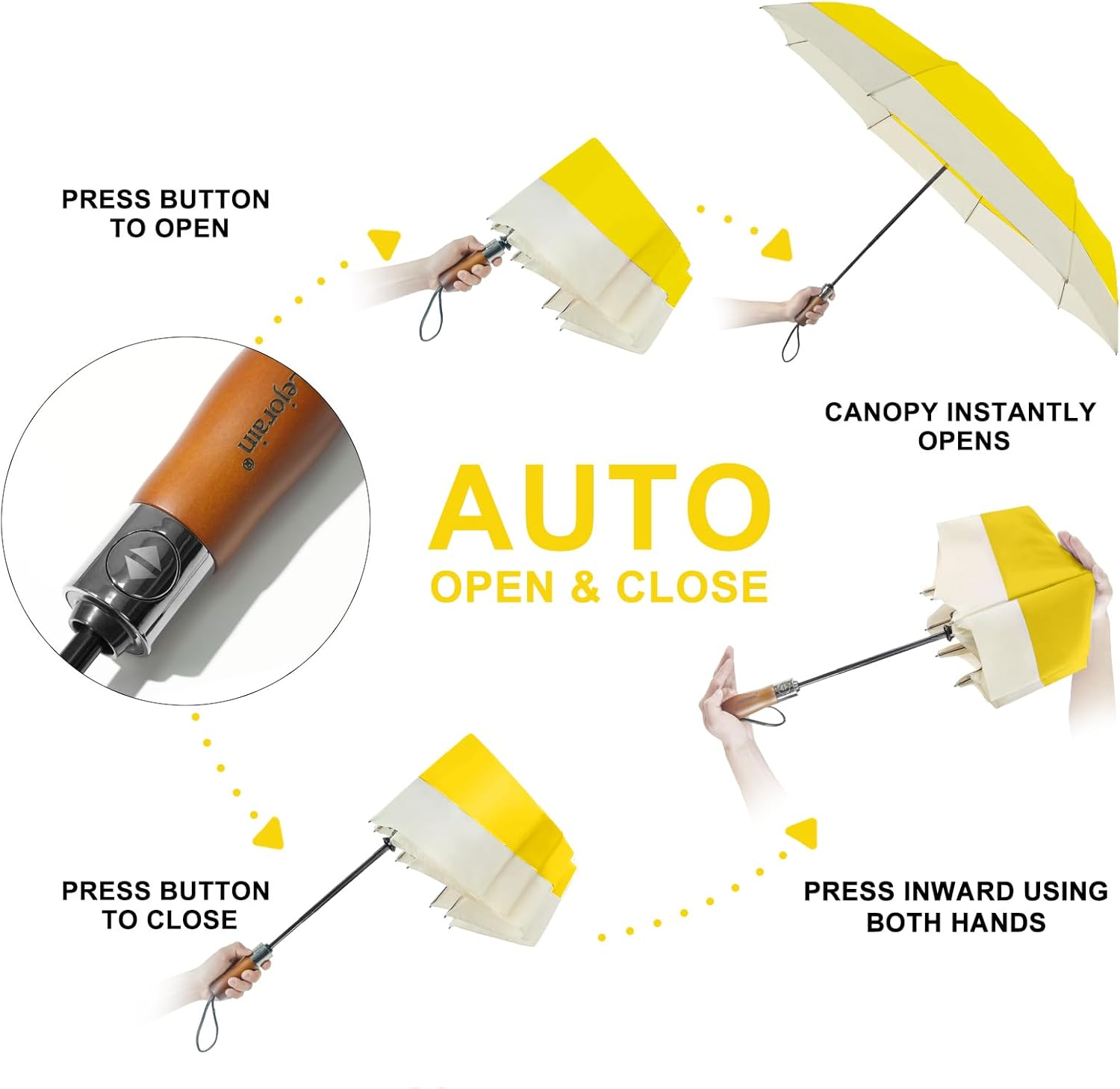 Lejorain Compact Golf Umbrella Large - 54inch Travel Big Portable Automatic Folding Umbrella Windproof for Men Heavy Duty 210T Dupont Teflon Coated Umbrella for Rain