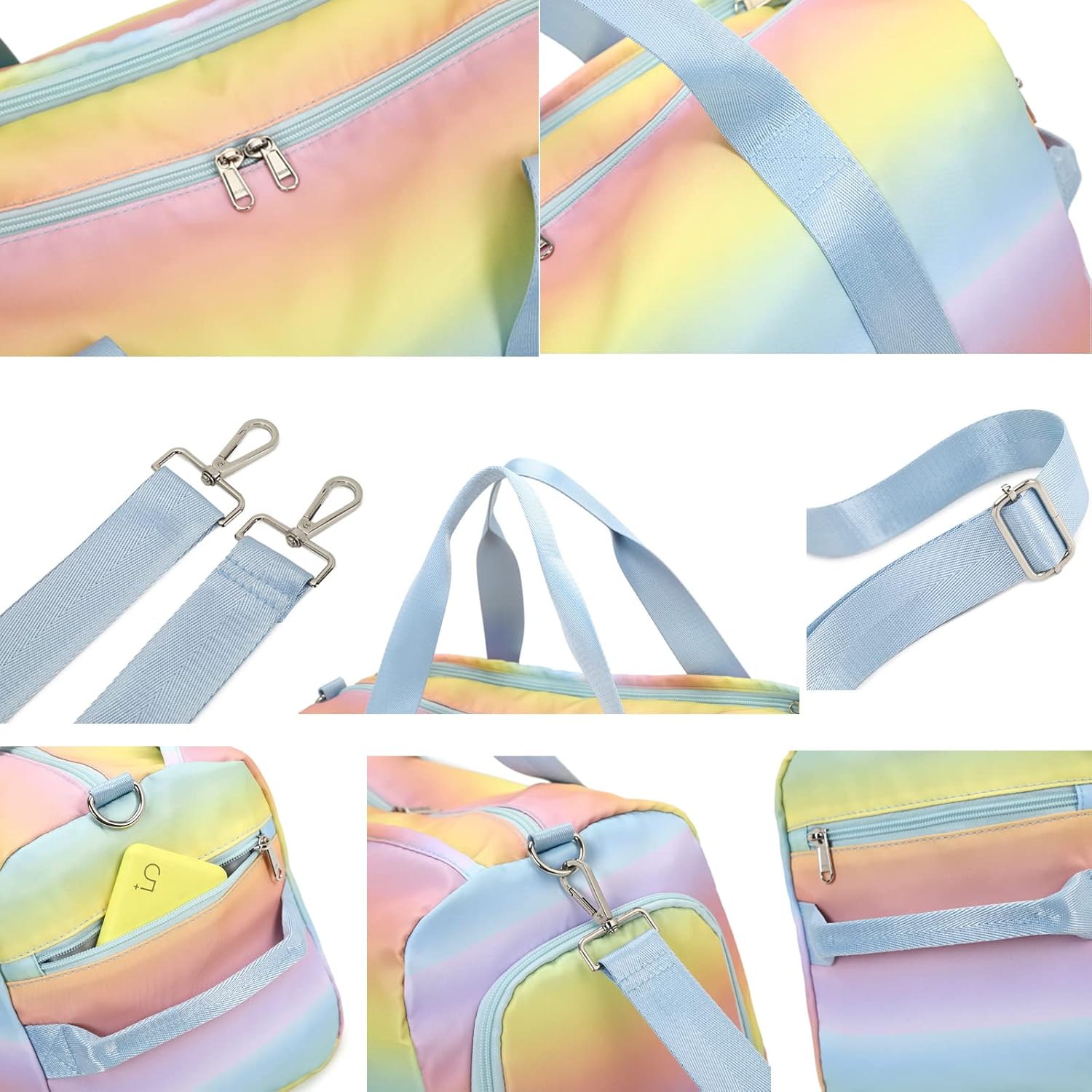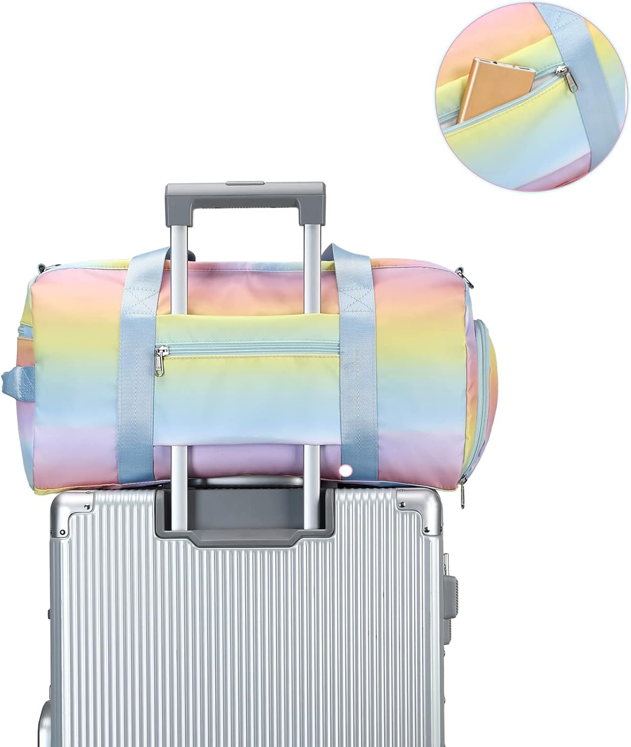 • ✔【Suitble Dimension】SIZE of 17.32" X 8.26" X 8.66"(L x W x H).Could carry 2-3 sets of clothes, essential cosmetics and 1-2 pairs of shoes.Great for use as a dry wet separated sports bag, gym bag, beach bag, swimming bag, weekender bag, overnight bag.
