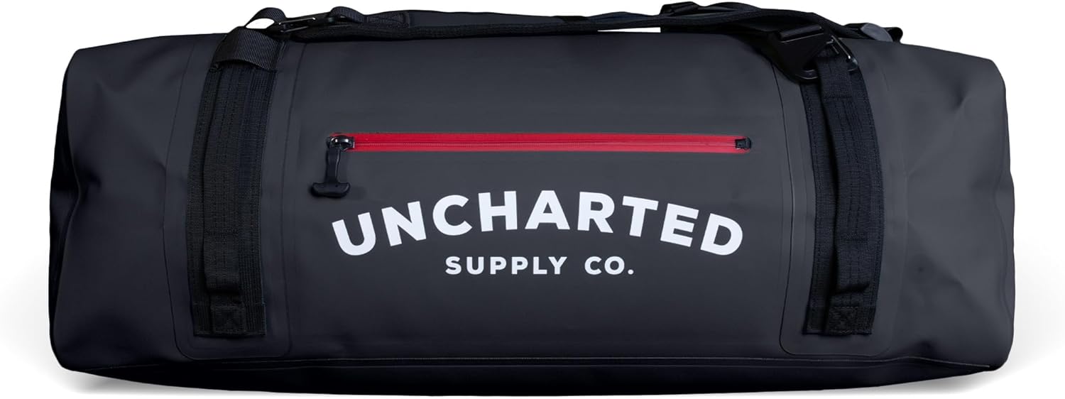 Uncharted Supply Co. The Vault Waterproof Duffel Bag - Airtight bag with Backpack Straps, Carry-On Size, Perfect for travel, boating, camping, recreation. (Black, 65L)