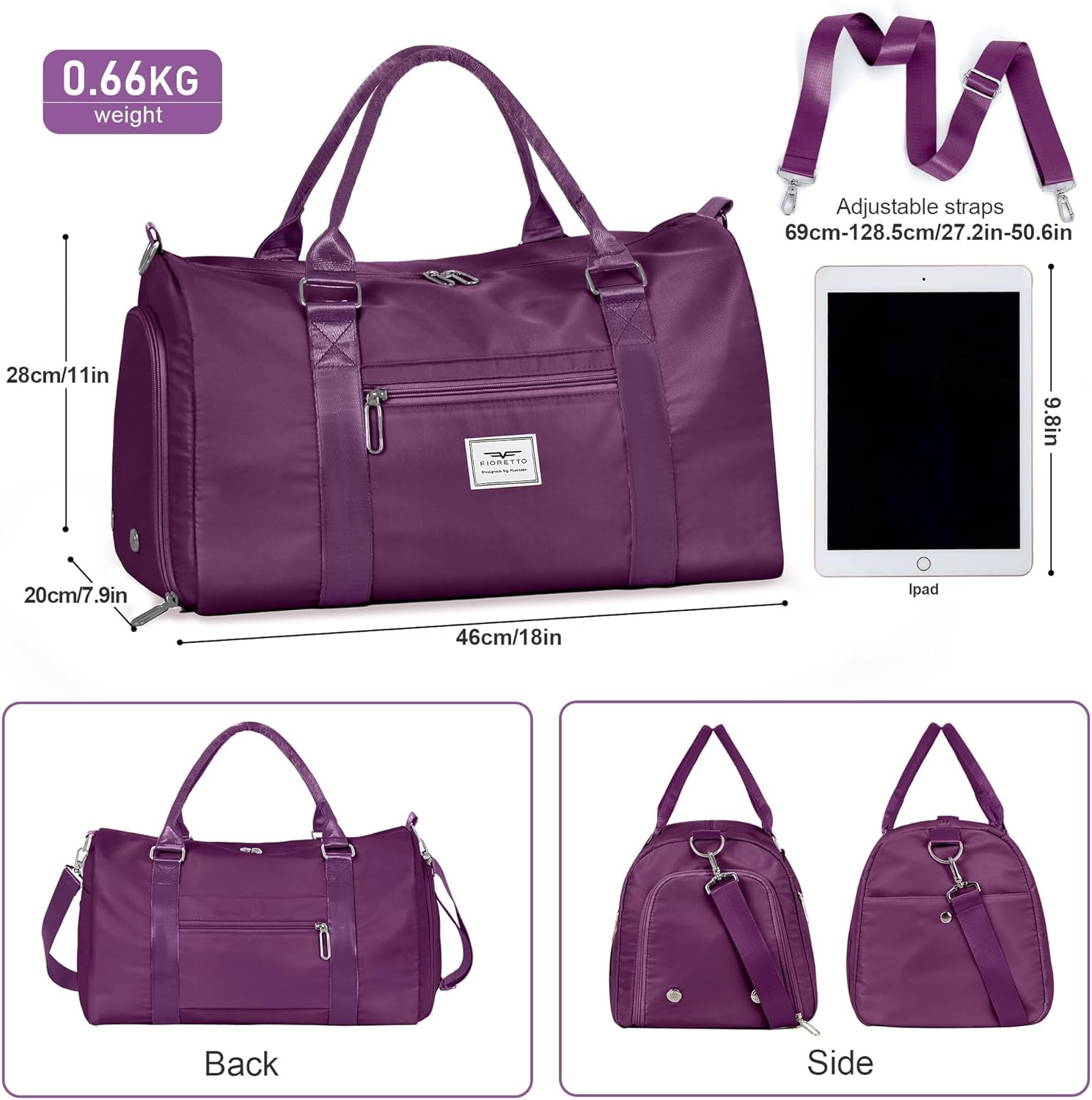 FIORETTO Womens Gym Tote Duffle Bag with Wet Pocket & Shoe Compartment, Sports Duffel Overnight Weekender Hospital Workout Carry on Bag for Girls, Ideal for Travel, Swimming, Dance, Ballet Dark Purple