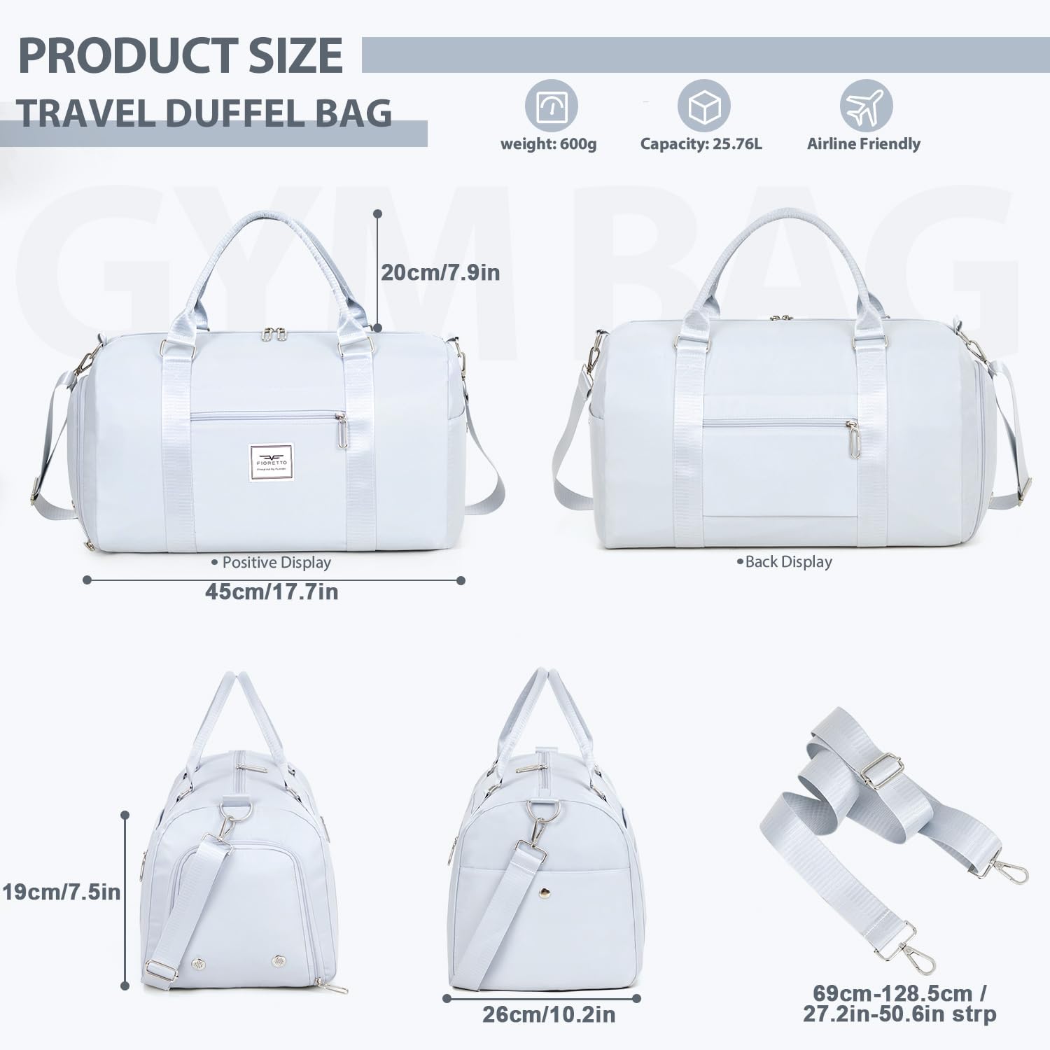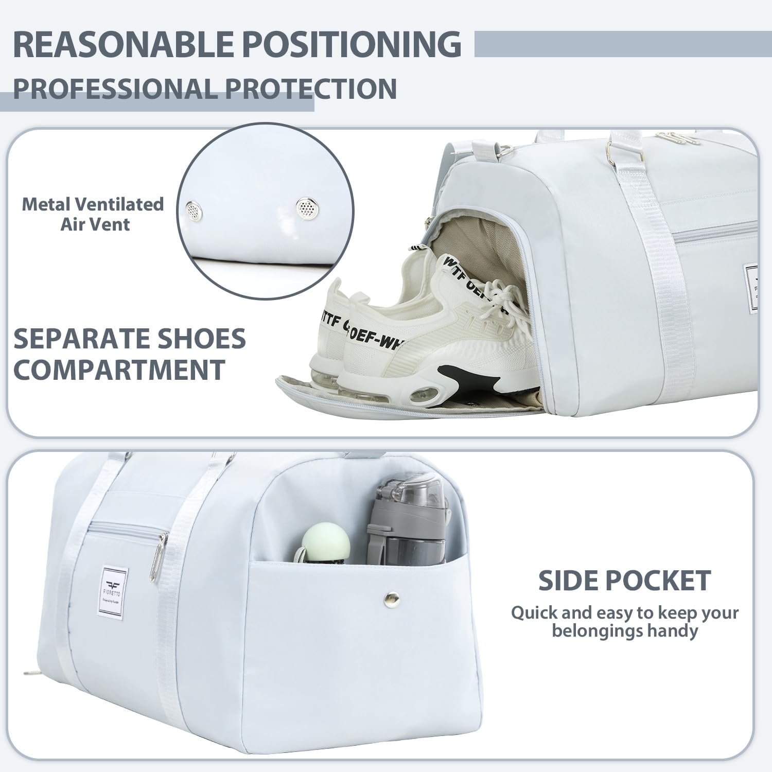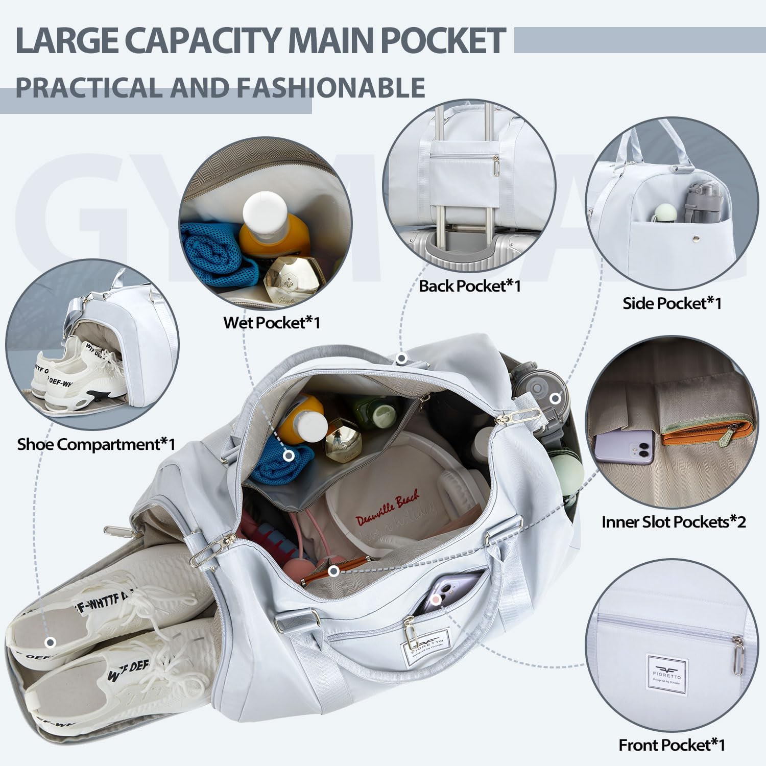 FIORETTO Womens Gym Tote Duffle Bag with Wet Pocket & Shoe Compartment, Sports Duffel Overnight Weekender Hospital Workout Carry on Bag for Girls, Ideal for Travel, Swimming, Dance, Ballet Grey