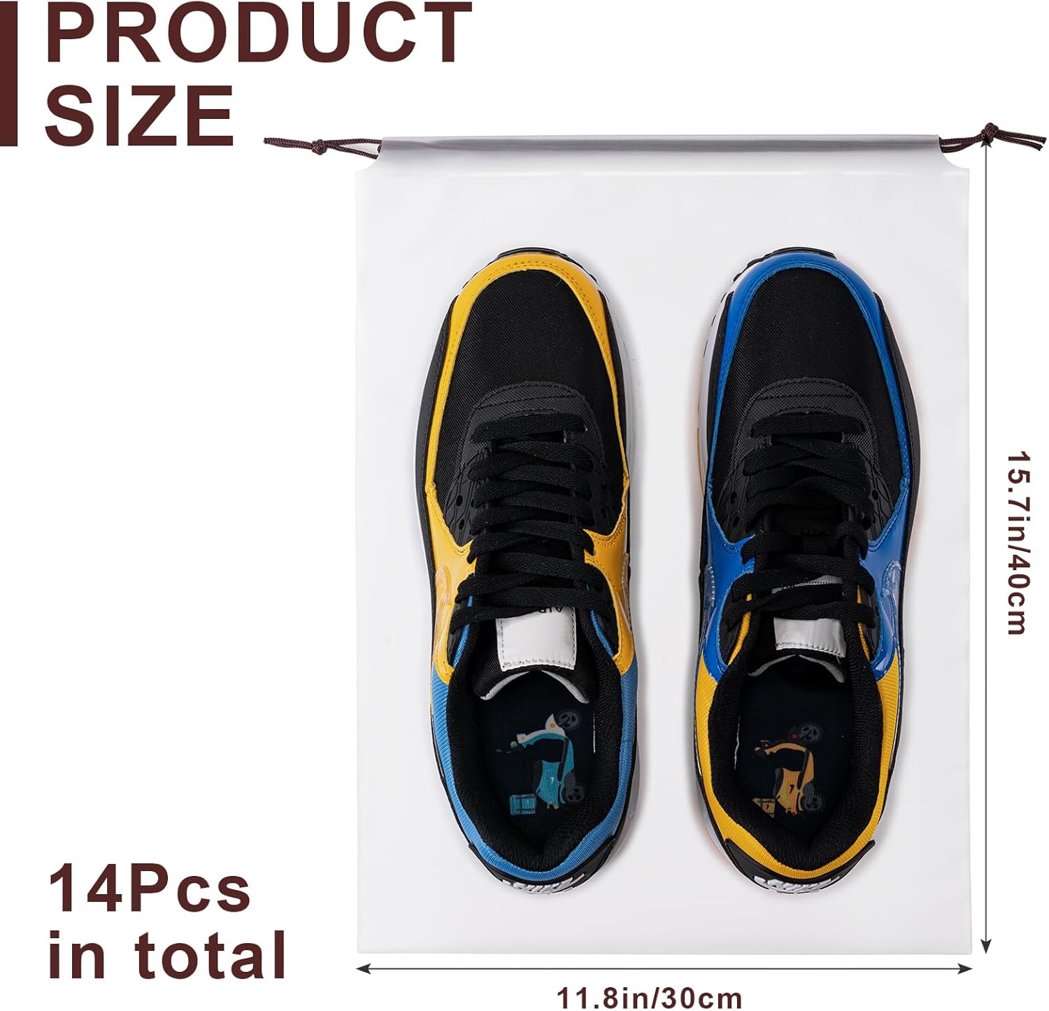 Hoewina Transparent Shoe Bags for Travel with Rope 14PCS Large Clear Shoe Bag Storage 11.8in X 15.7in Portable Travel Shoe Bags for Men and Women