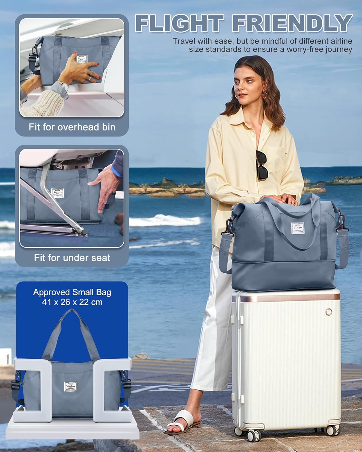 Travel Duffel Bag, Sports Tote Gym Bag, Shoulder Weekender Overnight Bag for Women
