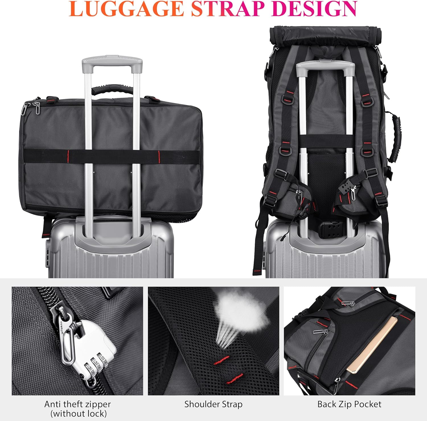 • Multifunctional Carrying On Backpack: This men rucksack come with an adjustable and removable shoulder strap, can be used as a duffel bag. Versatility pocketto keep your items organized and easy to find. Suitability travel partner for men women who like international travel, camping,overnight trip.