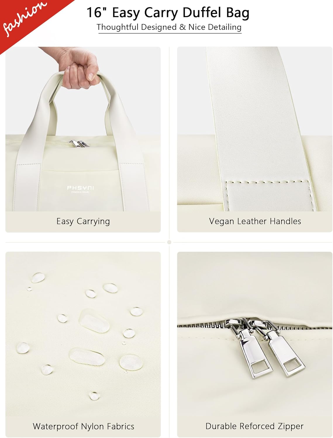 Compact Sports Gym Bag for Women, Cute Mini Duffle Bag with Wet Pocket & Shoes Compartment, Personal Item Travel Workout Bag, 16"-Small, Beige