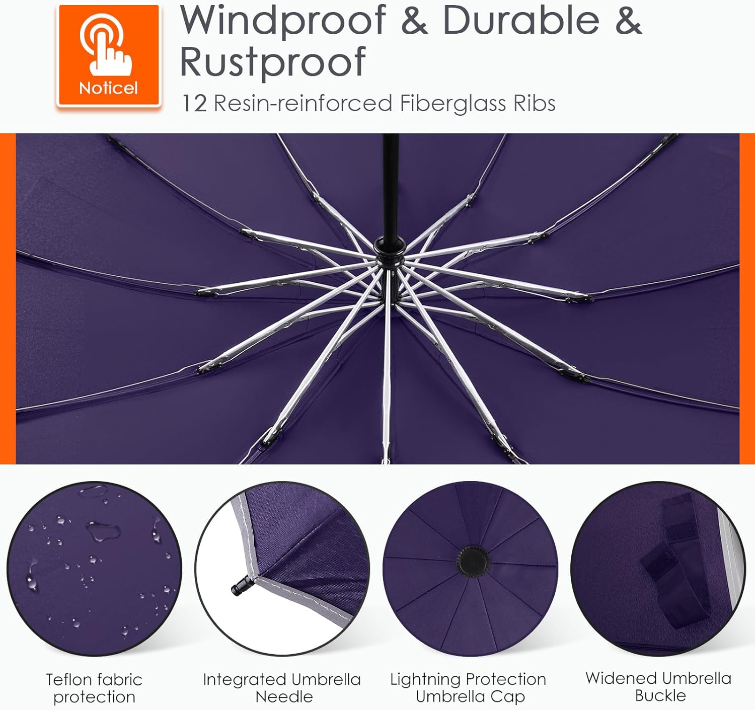 • ☂Super Large Windproof 10 Ribs Construction: Instead of using 8 or 9 aluminum ribs like other umbrellas on the Amazon, Bodyguard inverted umbrella is designed with 10 resin-reinforced fiber ribs that flex slightly to withstand powerful gusts without turning inside out. 10 Ribs umbrella will be more sturdy. And our large umbrellas for rain windproof adopt Teflon protective coating which is very waterproof.