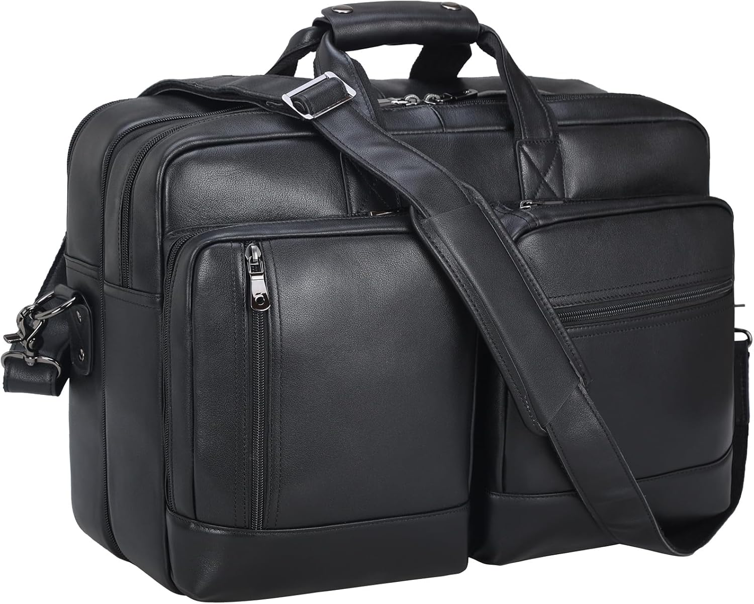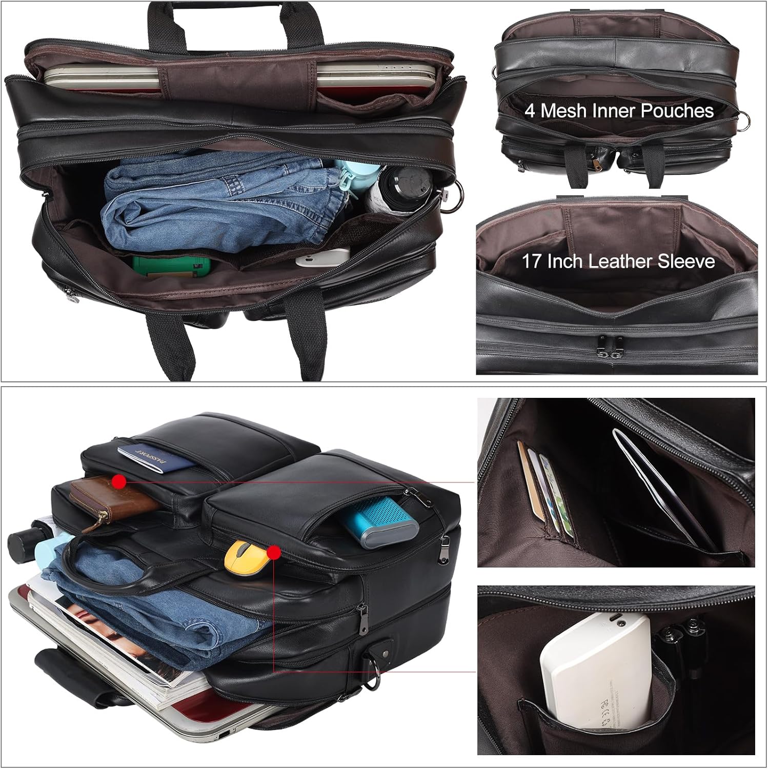 Leather Briefcase for Men Expandable Large 17 Inch Laptop Crossbody Shoulder Bag Business Travel Duffel Attache Case