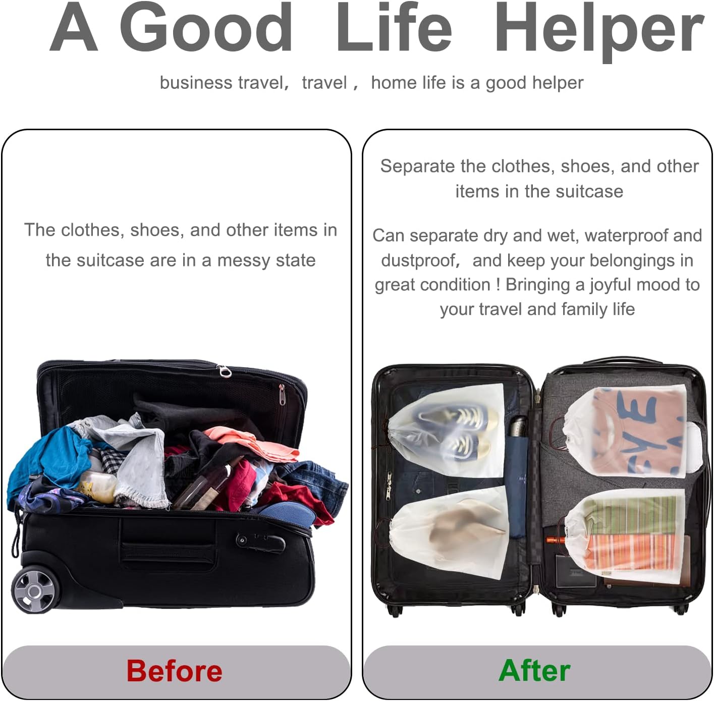 • Easy to use: The drawstring shoe bag features a transparent design making it easy to know what's inside without opening it You can easily find the items you need and save time