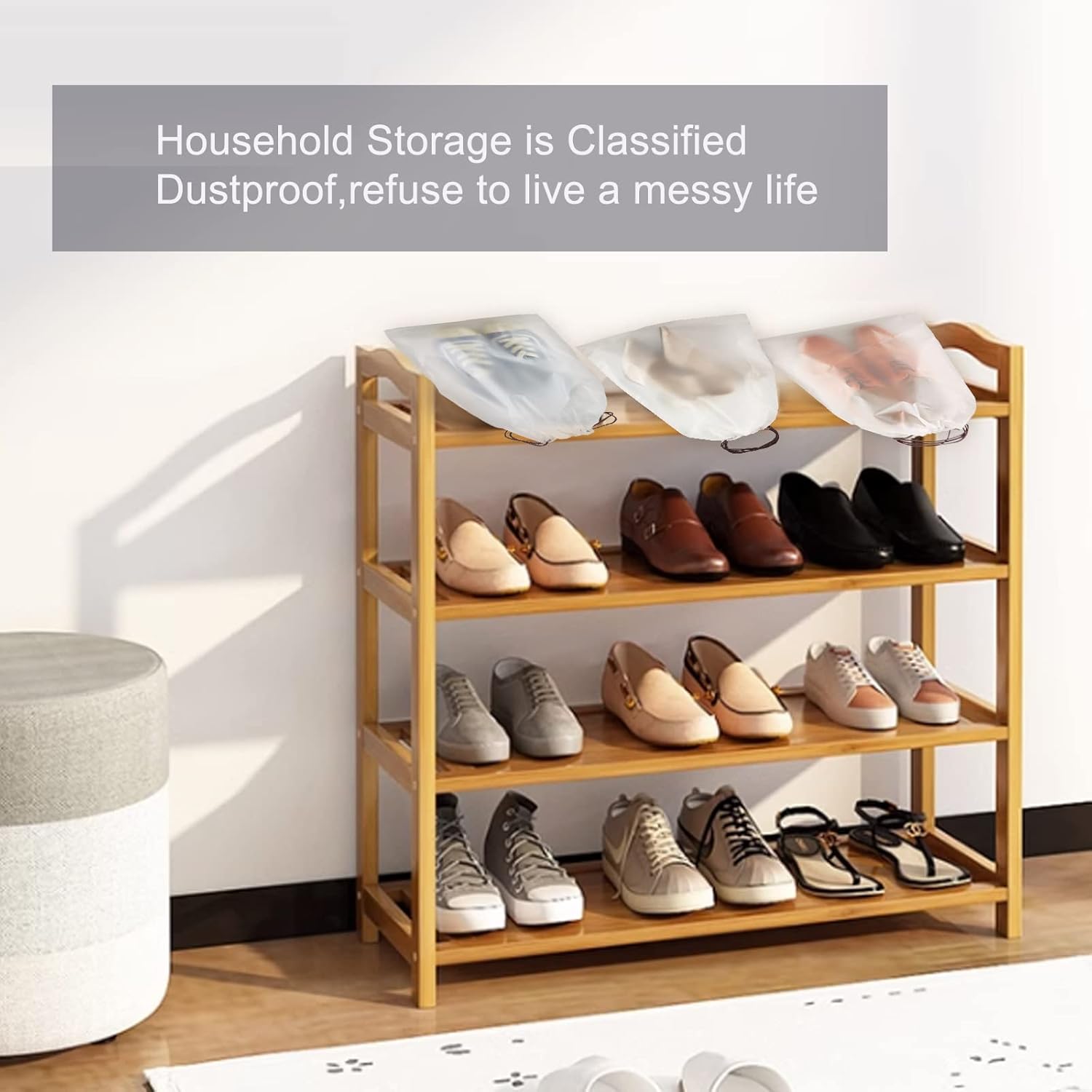 • Essential shoe bag: The transparent shoe bag can accommodate many family shoes making your shoes waterproof and dustproof and keeping the shoe rack neat and orderly