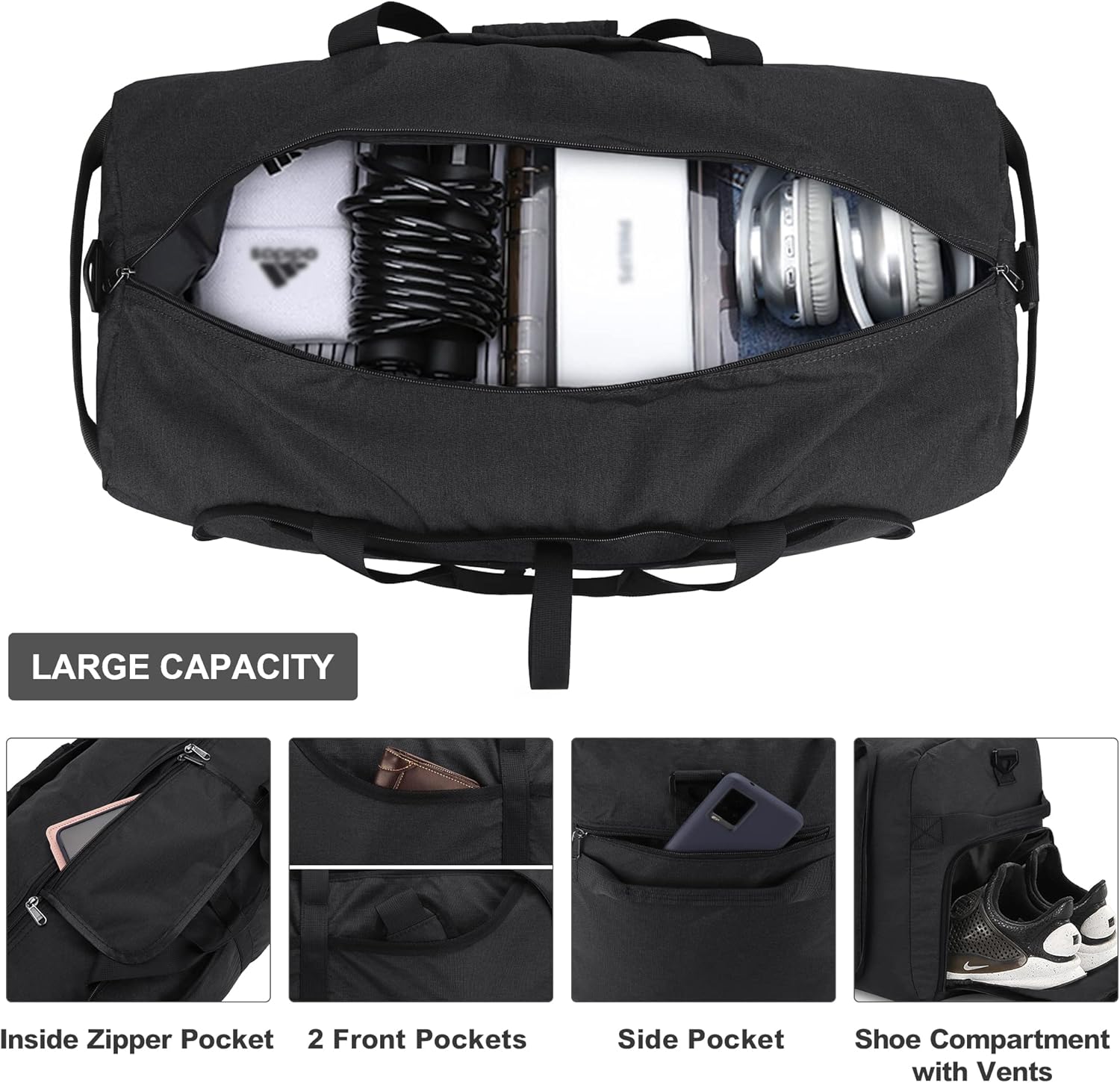 • Shoe Compartment: A separate shoe compartment on the side of the duffle bag, which can be used to place shoes or dirty clothes to avoid getting dirty or wetting clean clothes. The shoe compartment is also equipped with two exclusive vents, waterproof and anti-odor.