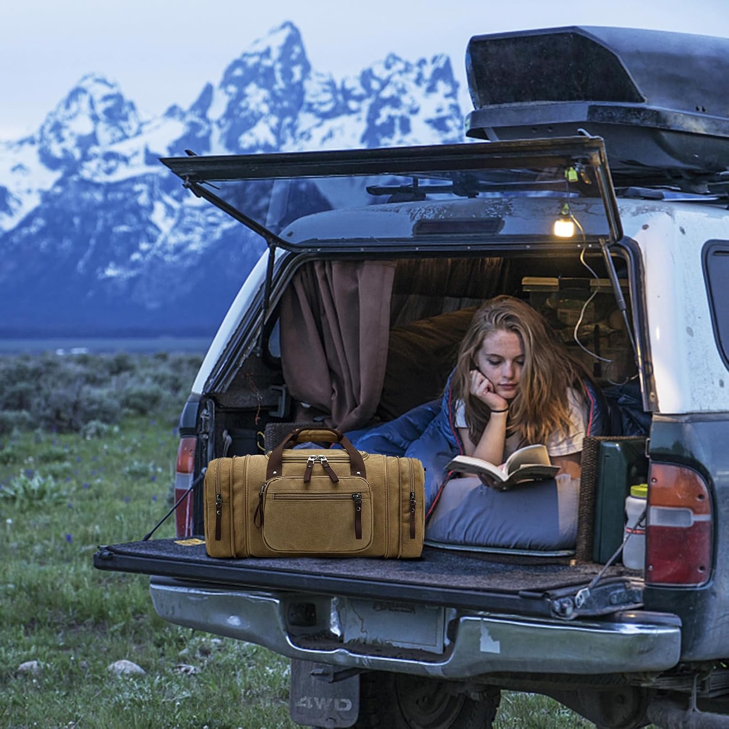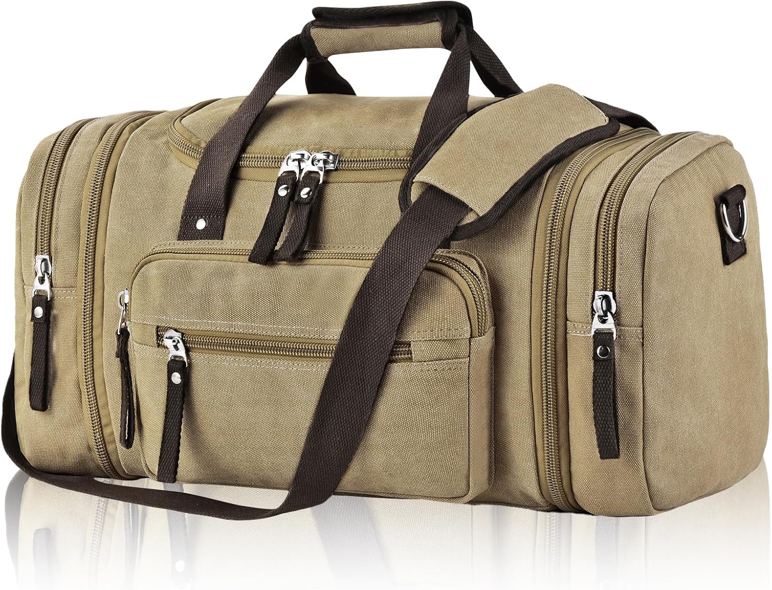 • 【Quality Material】The duffle bag for men is made of canvas material, abrasion and tear resistant, flexible zipper for quick opening and closing, padded base design keeps the contents of the canvas duffle bag protected from rough terrain and hard knocks