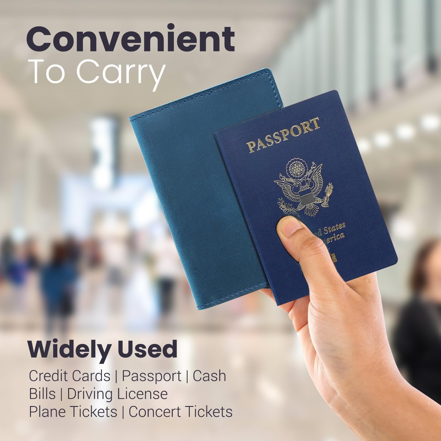 Leather Passport Holder with Travel Wallet, Genuine Leather Passport Cover- Passport Wallet, Leather Folding Wallet for Passports (Oval Cut, Blue)
