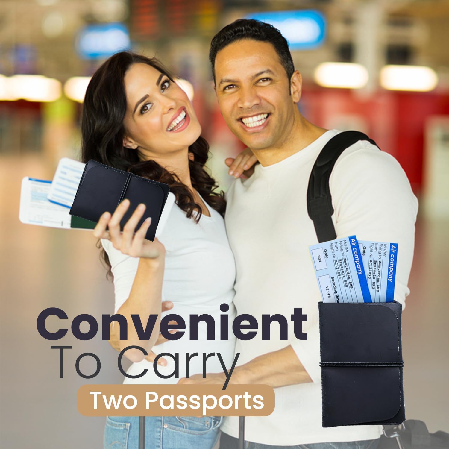 Leather Passport Holder with Travel Wallet, Genuine Leather Passport Cover- Passport Wallet, Leather Folding Wallet for Passports (Strap, Black)
