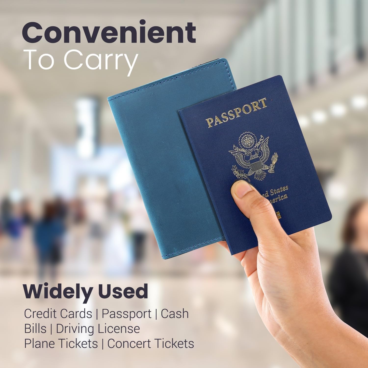 Leather Passport Holder with Travel Wallet, Genuine Leather Passport Cover- Passport Wallet, Leather Folding Wallet for Passports (Straight Cut, Blue)