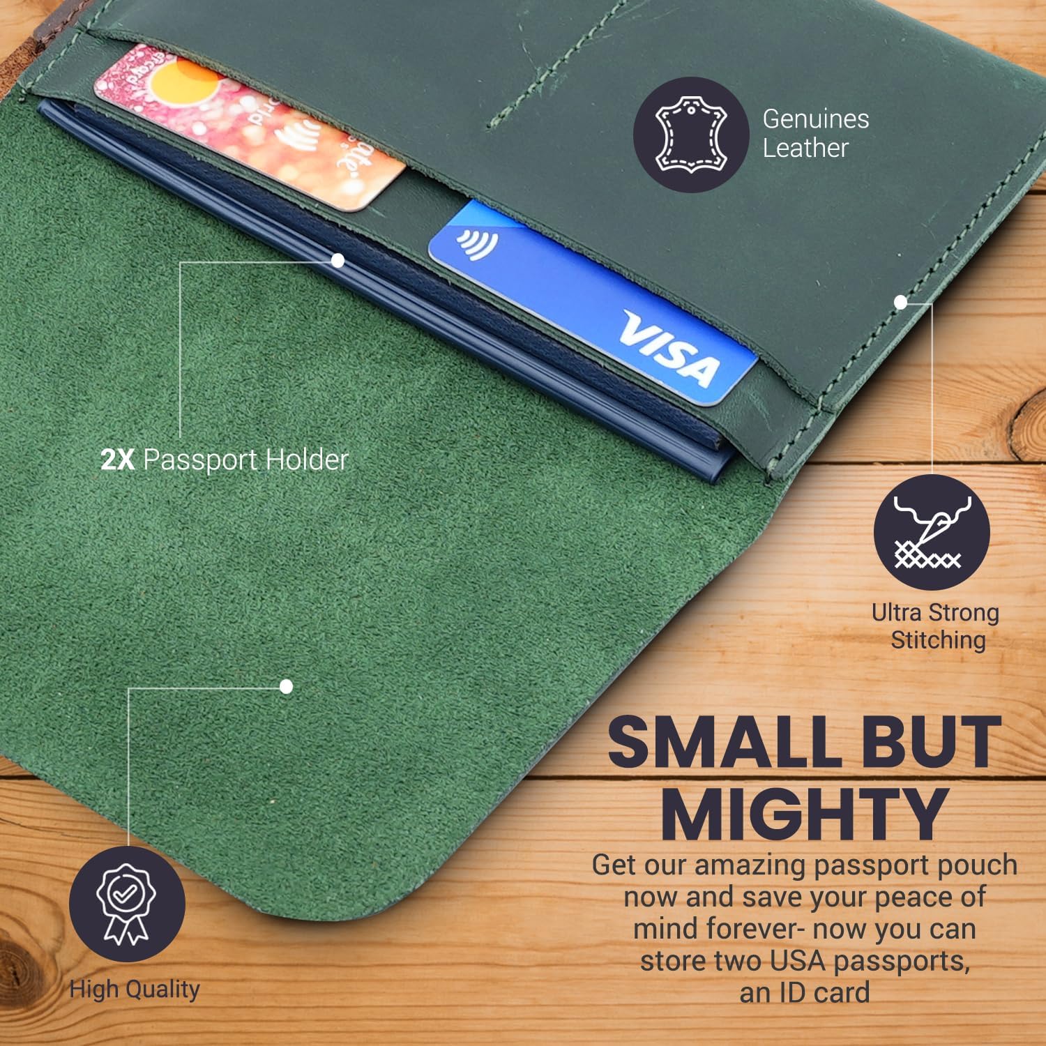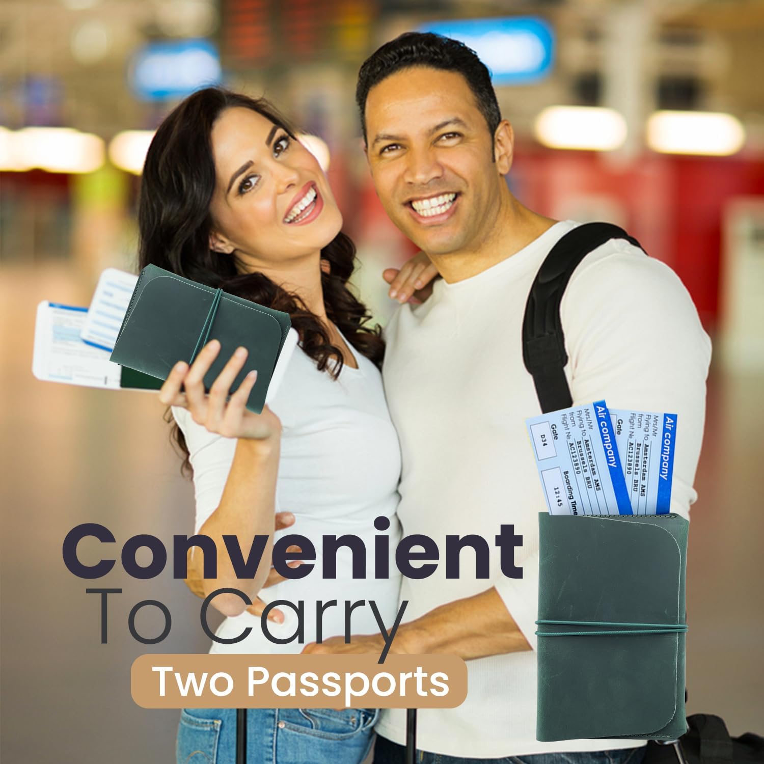 Leather Passport Holder with Travel Wallet, Genuine Leather Passport Cover- Passport Wallet, Leather Folding Wallet for Passports (Strap, Green)