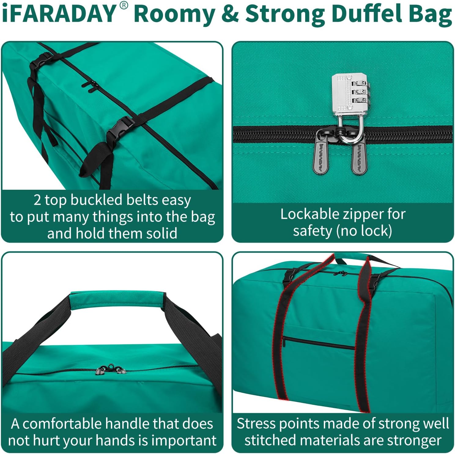 • LARGE CAPACITY DUFFLE BAG: With up to 110L capacity, the extra large duffel bag has 1 main compartment, 1 inside zipper pocket, 1 front zipper pocket, you can easy to organize different of things separatly.