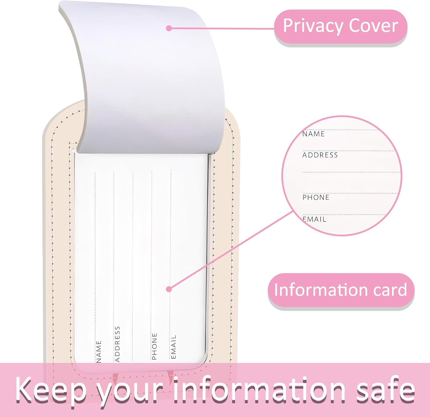 • Privacy Protection:Travel cruise luggage tag is designed with a privacy cover and ID label.The privacy cover can cover your name and address tag,protecting your important personal information from malicious prying eyes,and allowing you to enjoy a safe and enjoyable journey.There is a transparent interlayer inside the luggage tags to protect your information from being damaged by natural factors while traveling
