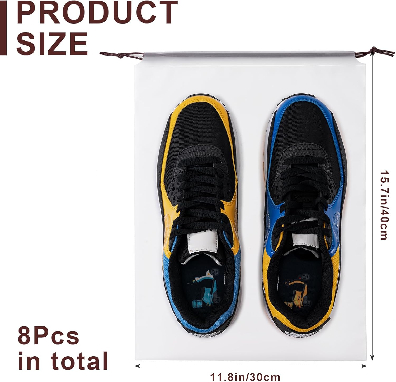 Hoewina Transparent Shoe Bags for Travel with Rope 8PCS Large Clear Shoe Bag Storage 11.8in X 15.7in Portable Travel Shoe Bags for Men and Women