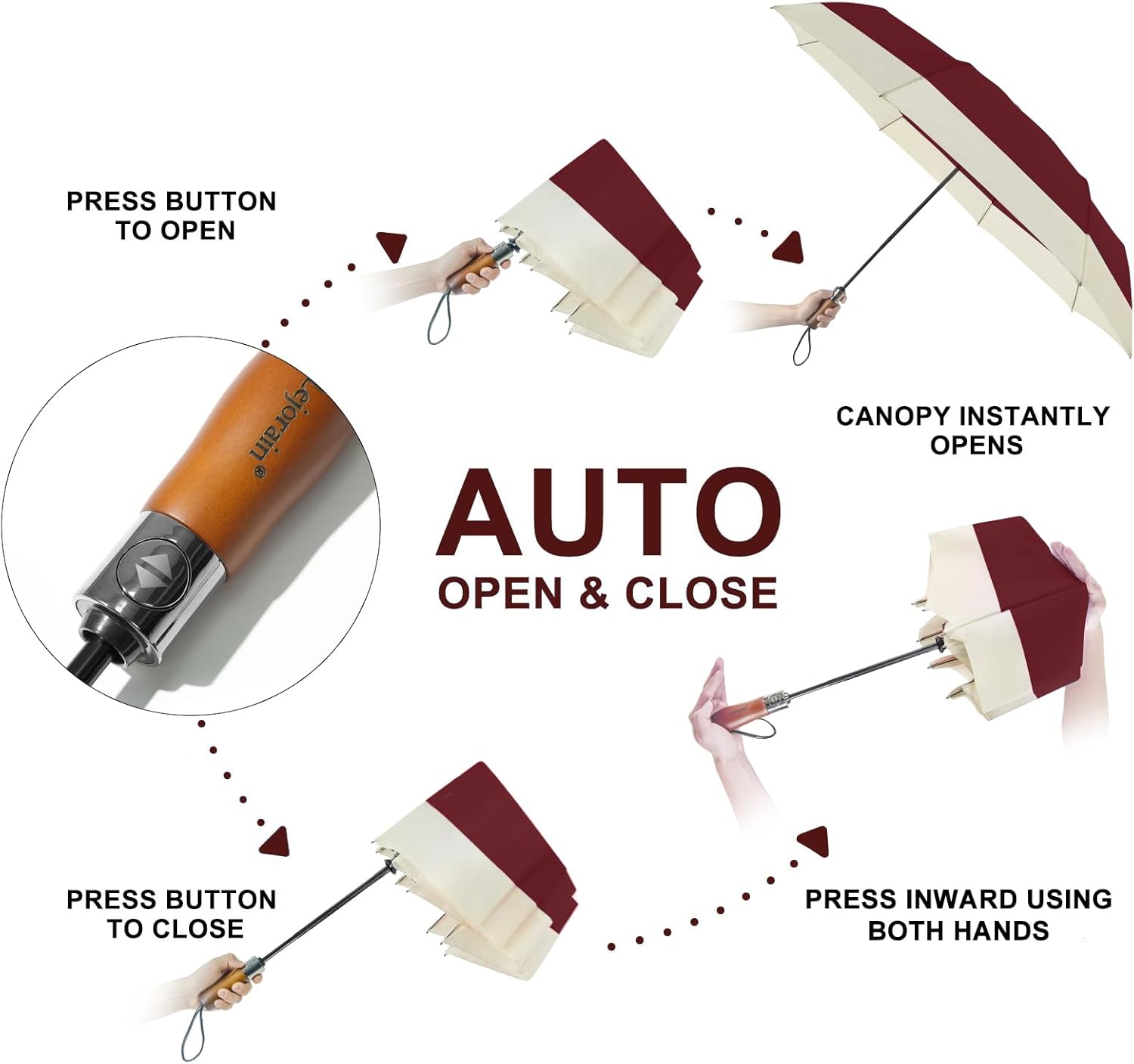 Lejorain Compact Golf Umbrella Large - 54inch Travel Big Portable Automatic Folding Umbrella Windproof for Men Heavy Duty 210T Dupont Teflon Coated Umbrella for Rain