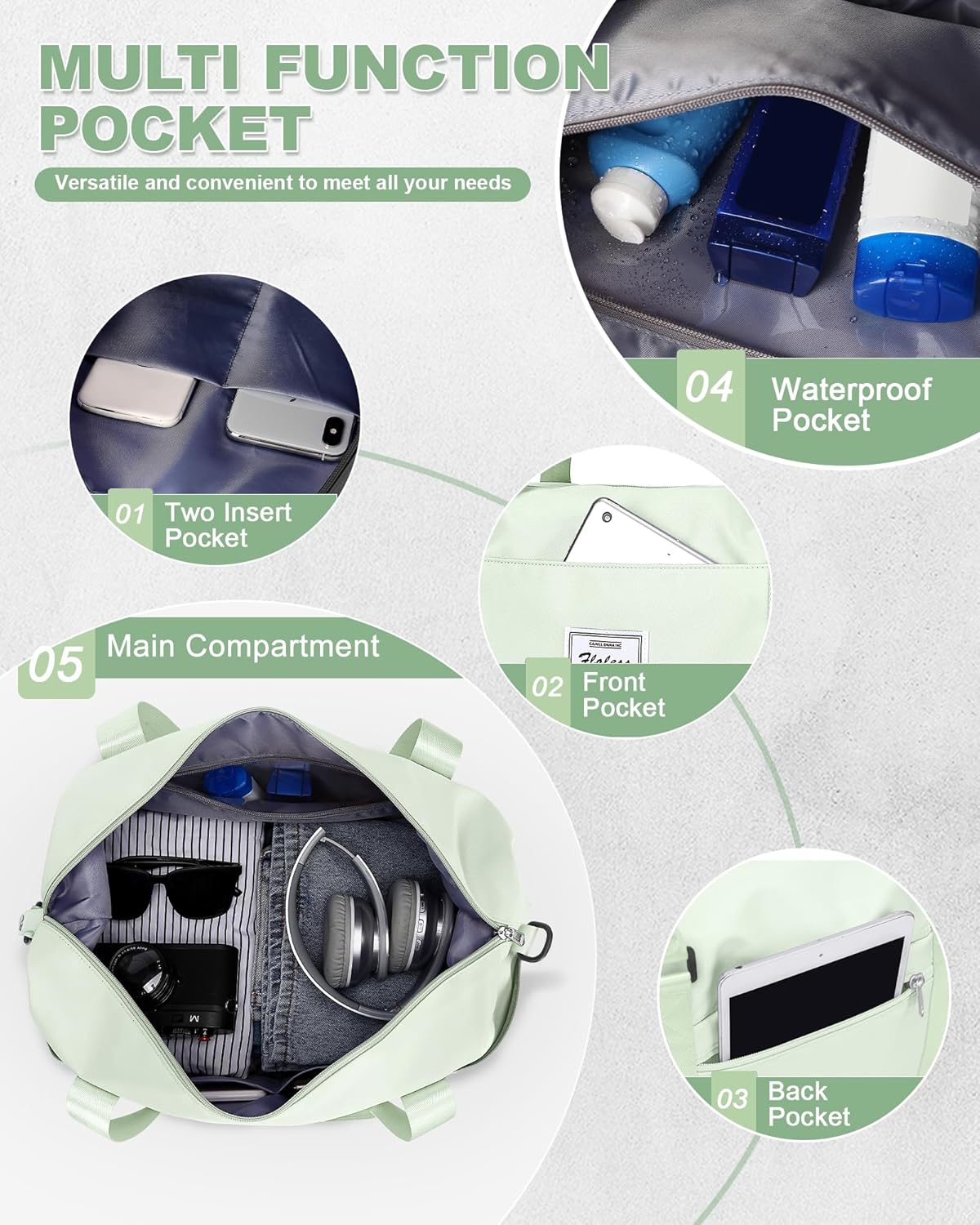 • 【Dry Wet Separated Tote Gym Bag】High-density waterproof wet pocket in the main compartment,which can help you to separate dry items and wet items,if you have wet clothes or towel,you can put it in this crossbody bag.