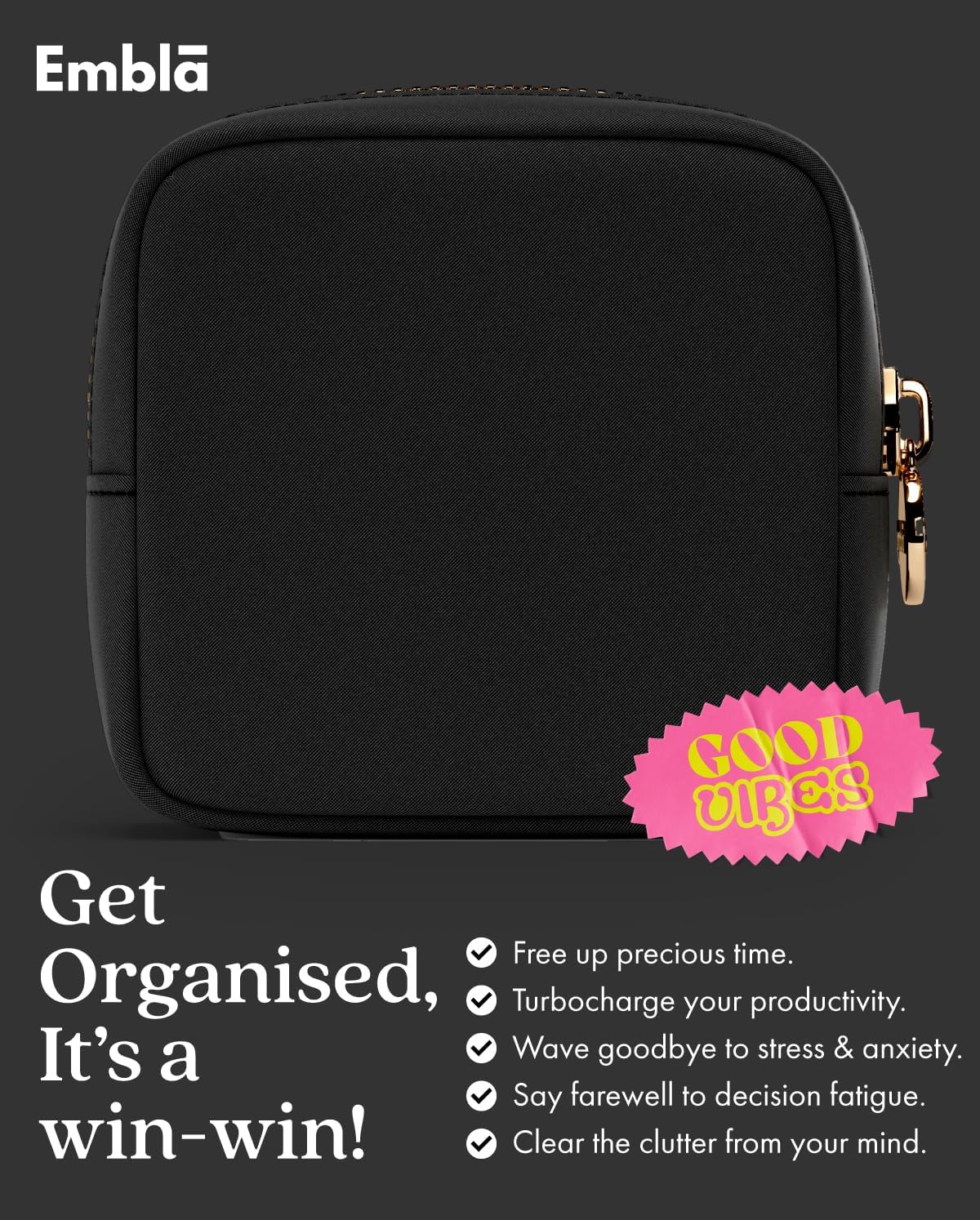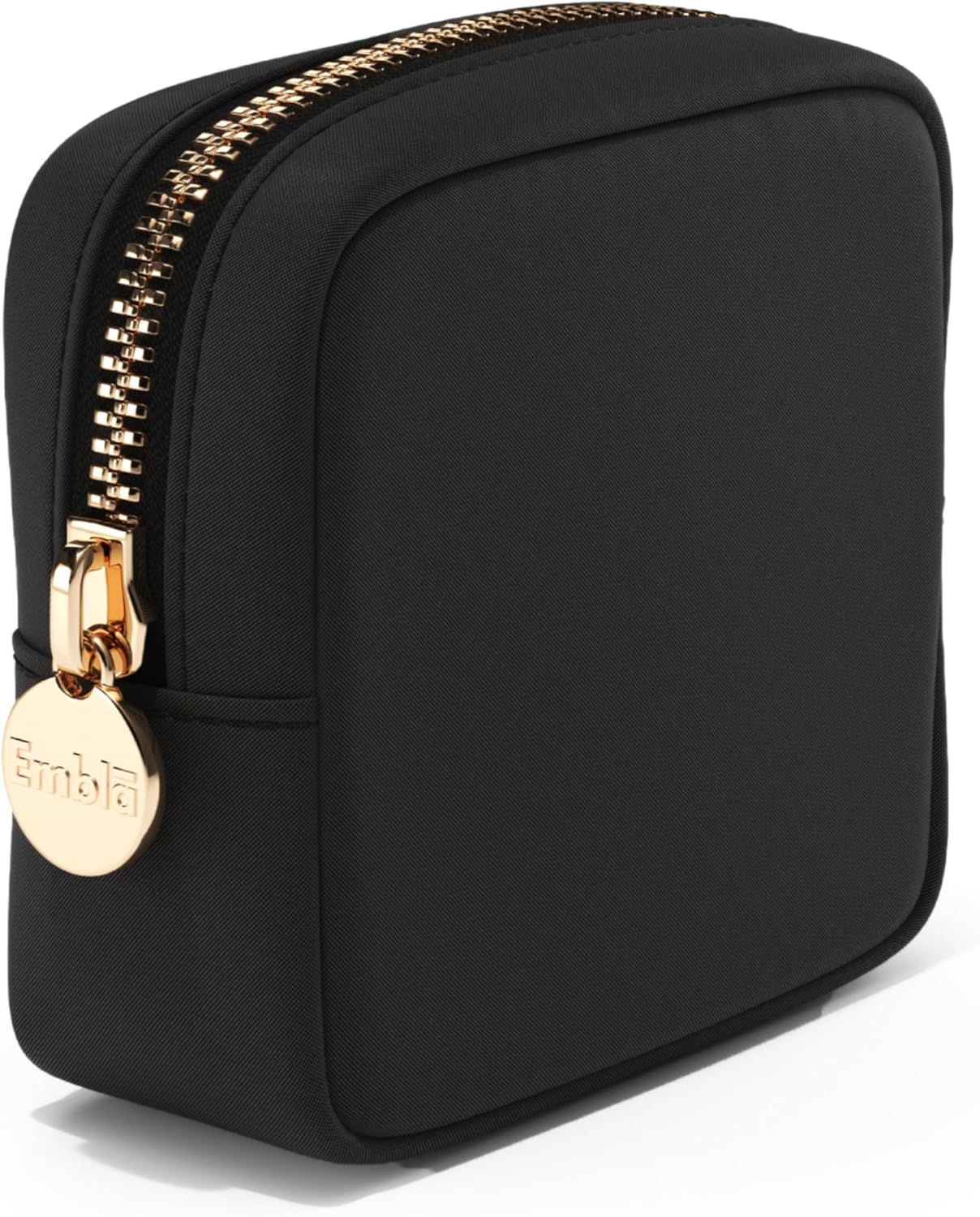 Embla Makeup Bag Travel Cosmetics Pouch and Toiletry Bag, Nylon Zipper Pouch Purse, Cute Make Up Organizer Storage Tote for Women Girls, Waterproof Travel Skincare Case, Small Makeup Bags, Black Noir