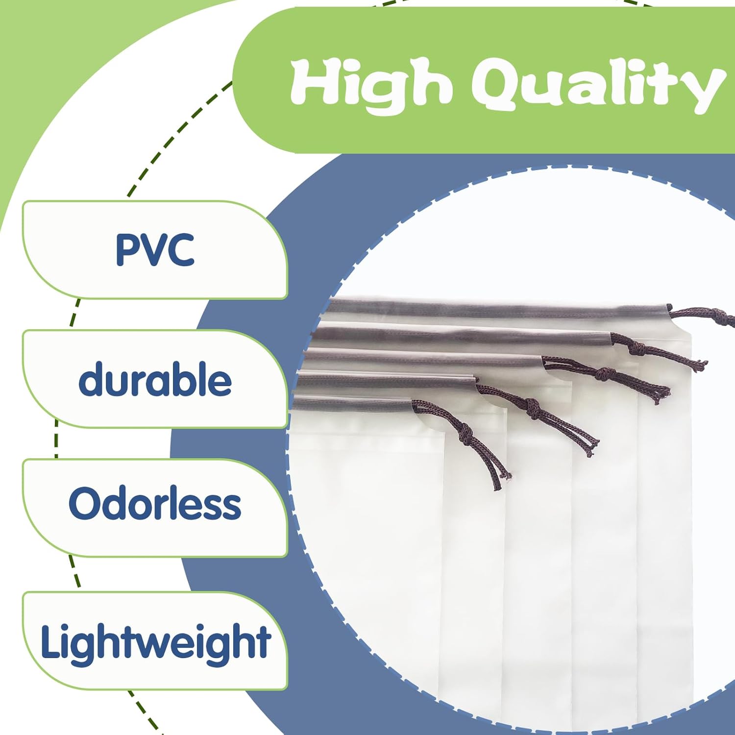 • High Quality:Made of high-quality translucent PVC and thick rope,has a simple appearance,and is sturdy and durable.Travel shoe bags are odorless,breathable,foldable,lightweight,and convenient to use.