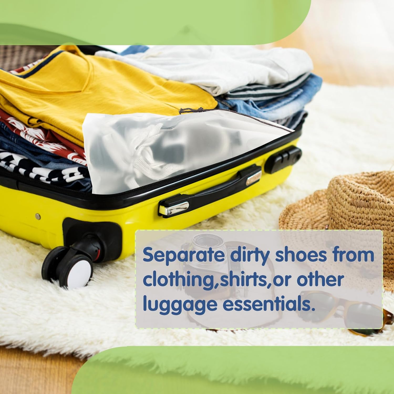 • Package Include:Each pack contains 100 pcs travel translucent shoe bags.The quantity is very suitable for daily household or travel use.Separate dirty shoes from clothing,shirts,or other luggage essentials.