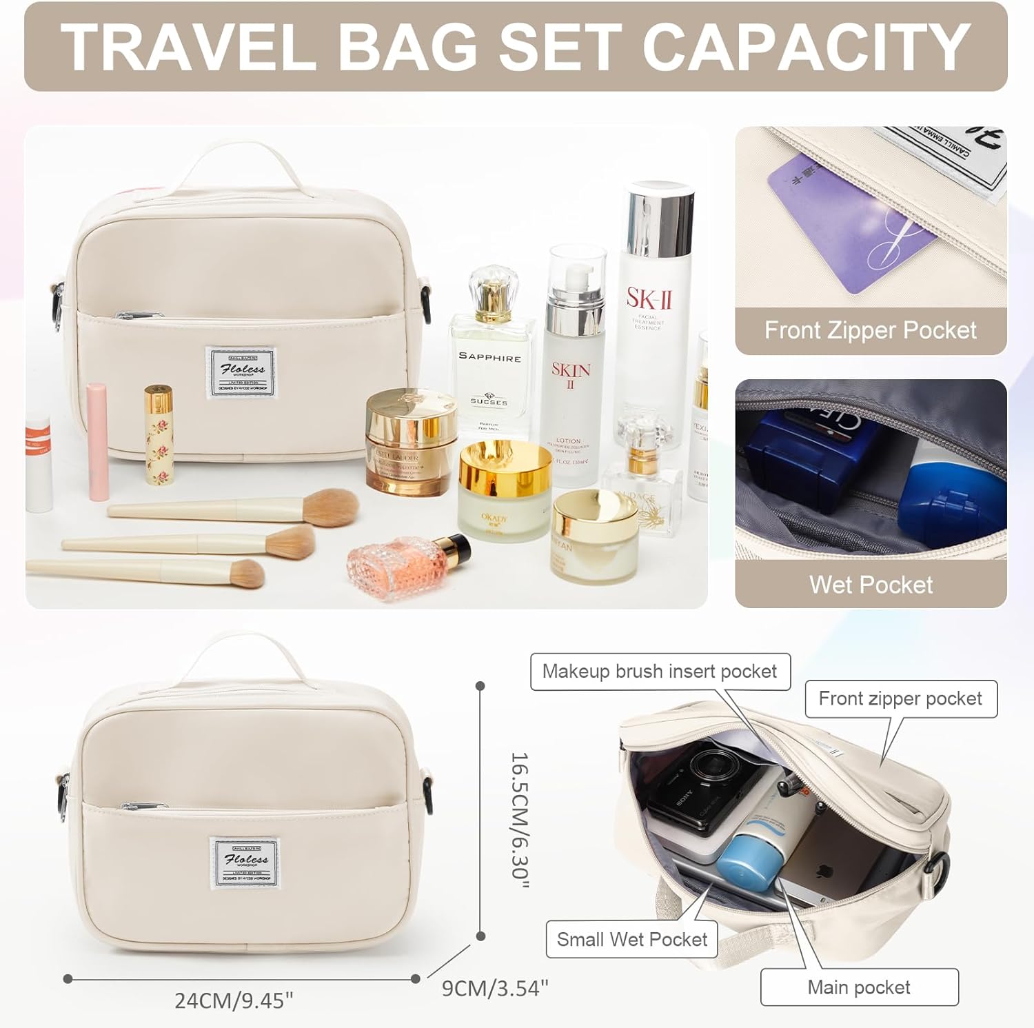 Gym Bag for Women Men with Shoes Compartment & toiletry bag,Sport Swimming Yoga Bag,Waterproof Travel Duffel Bag Small Carry on Bag Overnight Weekender Bags Personal Item Bag for Airlines Cream White