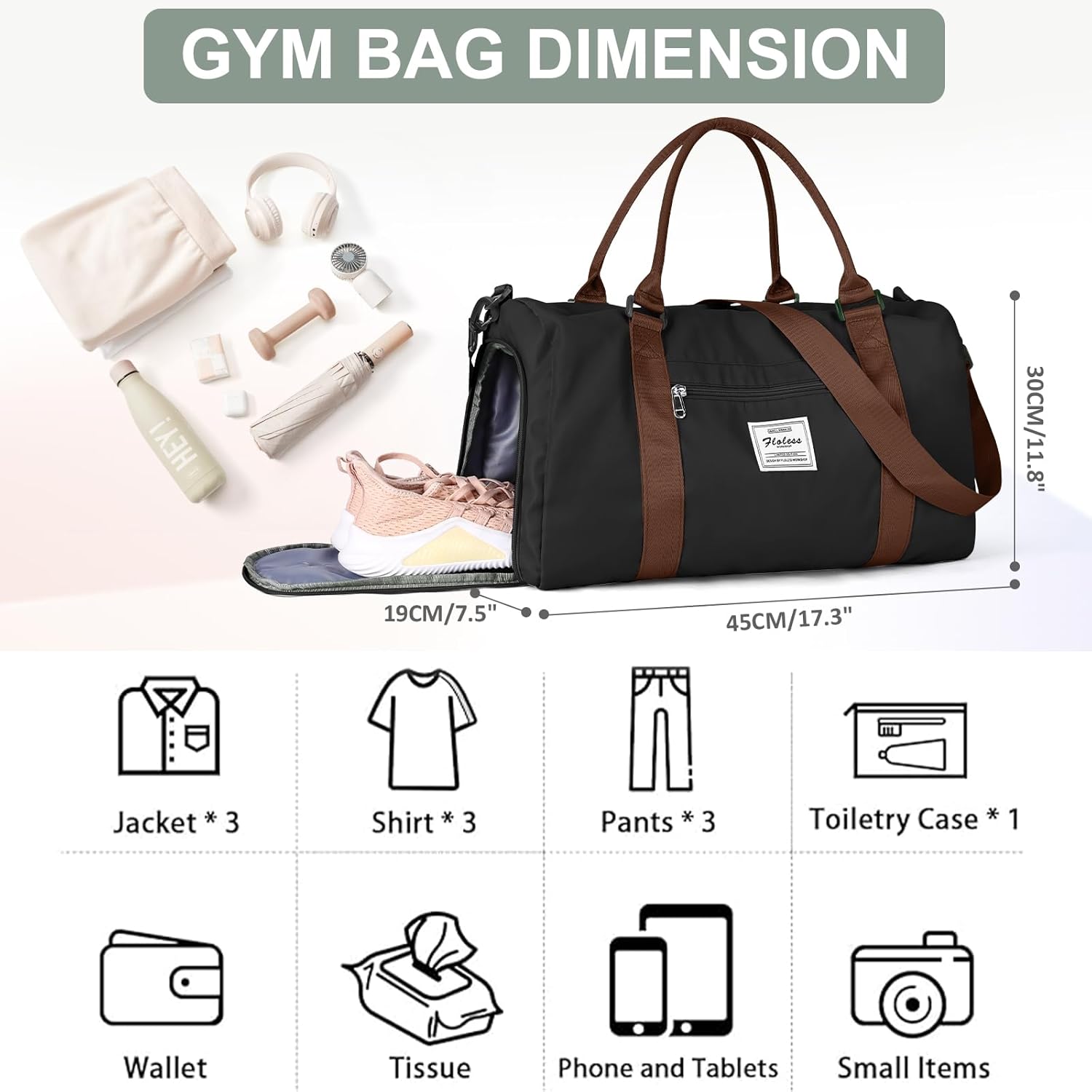 Gym Bag for Women with Shoes Compartment,Small Duffel Bag Sport bag with Toiletry Bag Overnight Travel Tote Bags Weekender Carry on Bag Personal Item Bags for Airlines Black Brown