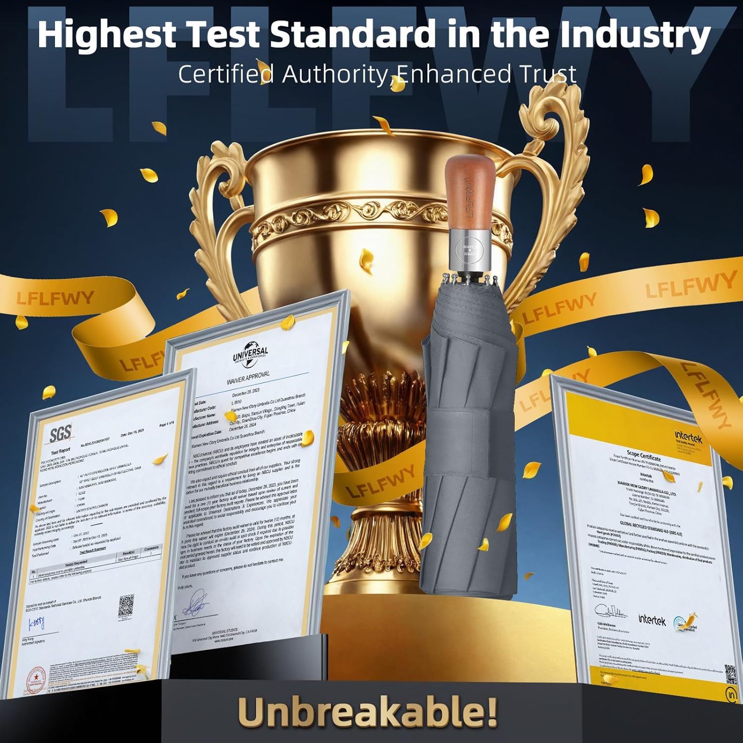 Umbrella Strong Windproof, Triple-Layer Canopy, 10 Fiberglass Ribs, Auto Open/Close, Wooden Handle, Sleeve with Anti-Loss Hook, Umbrellas for Travel & Commute & Daily Use & Gift