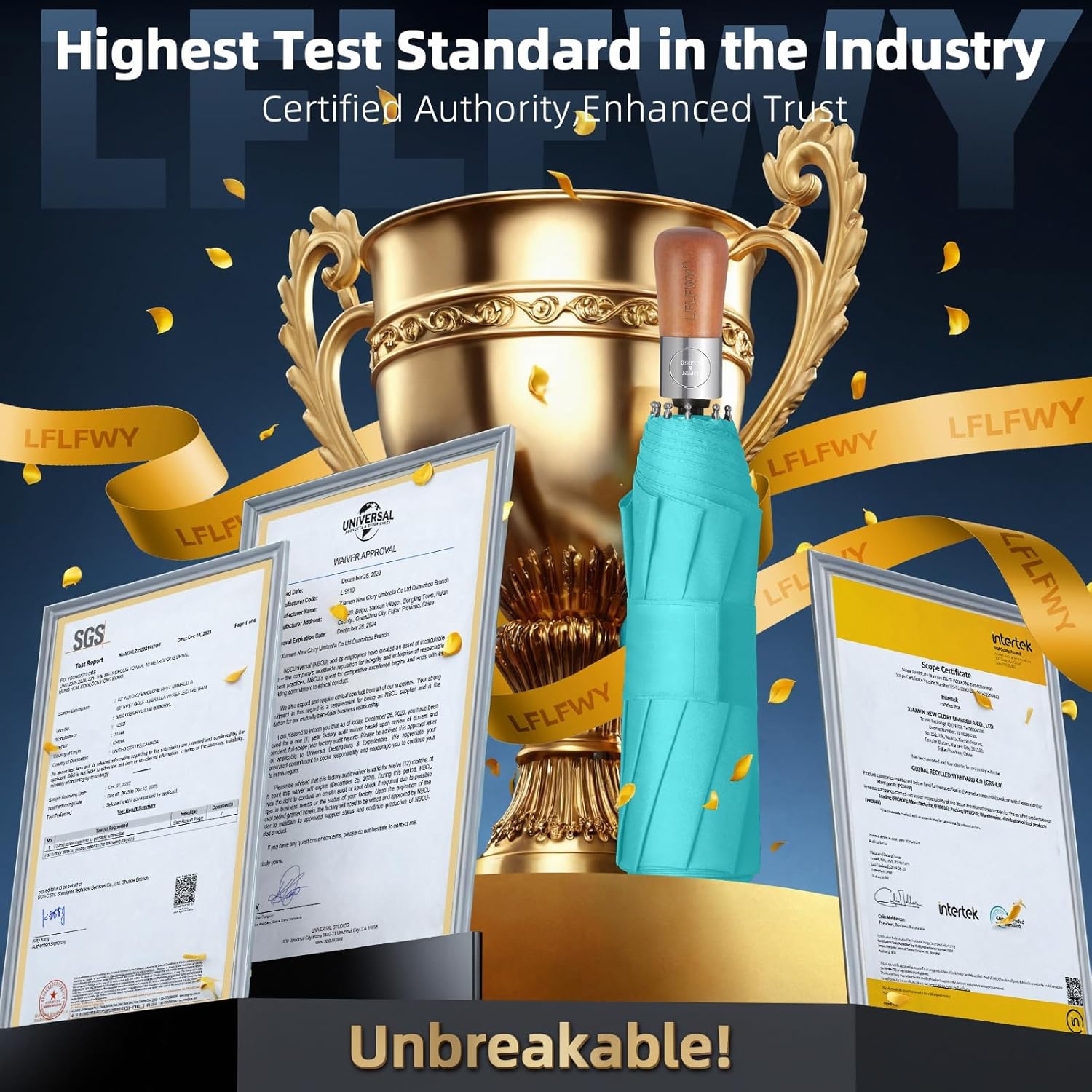 • ENGINEERED TO RESIST LEVEL 8 GALE-FORCE WINDS WITH 10 FIBERGLASS RIBS & TRIPLE-LAYER CANOPY Our breakthrough triple-layer vented canopy system, reinforced by 10 flexible fiberglass ribs, is engineered to disperse powerful gusts by allowing wind to pass through rapidly. This advanced construction of travel umbrella compact provides superior stability and protection, ensuring reliable performance even during powerful storms and strong winds.