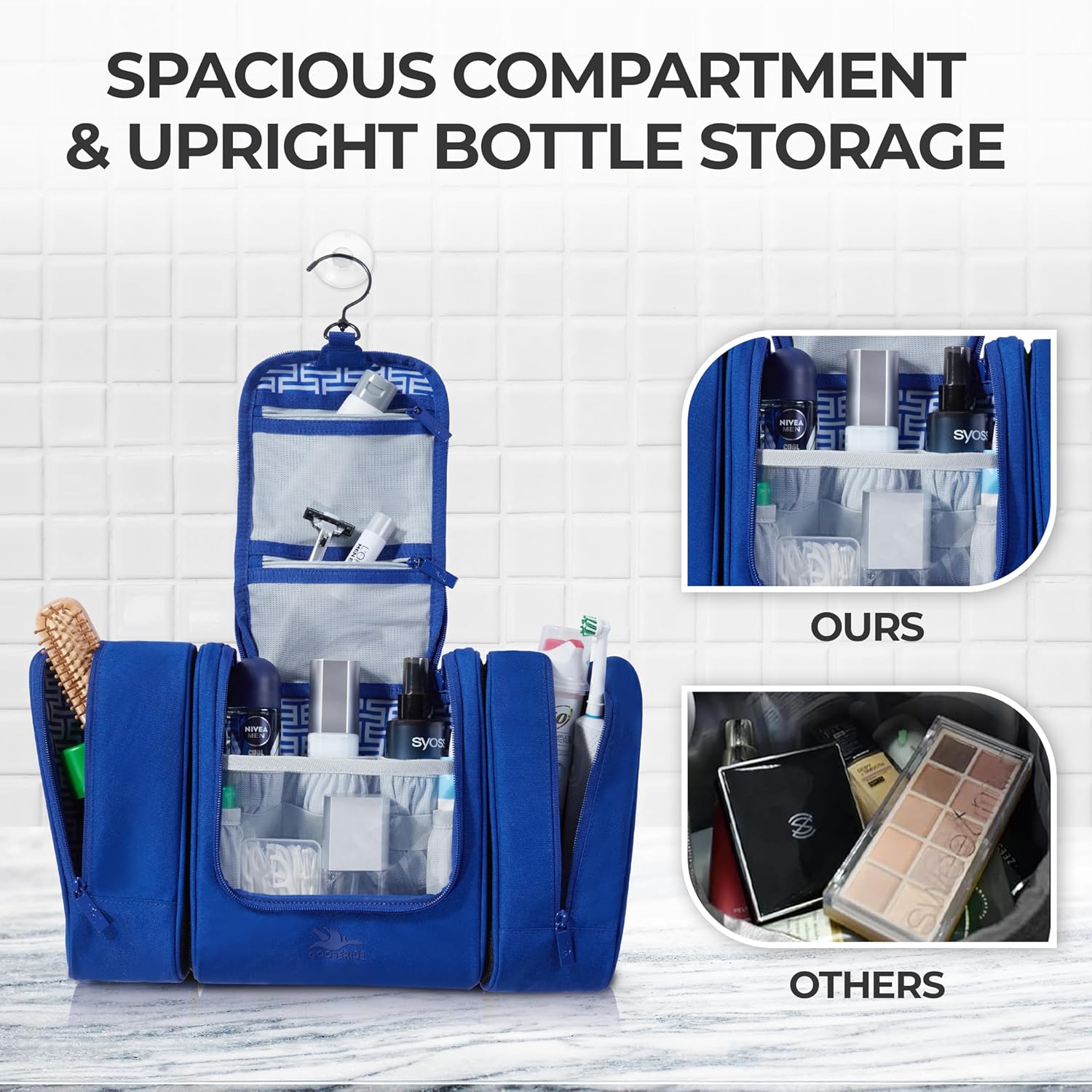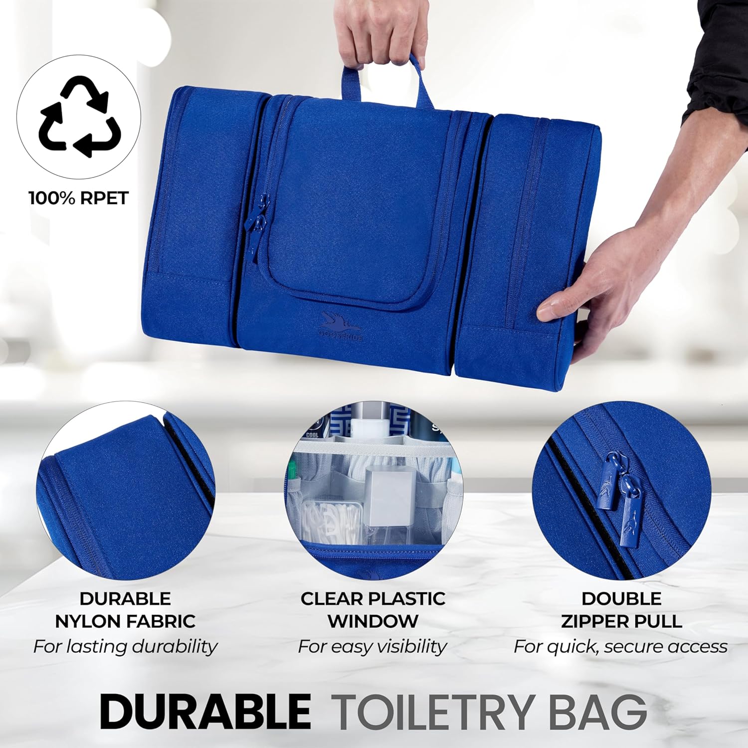 Travel Toiletry Bag for Women and Men - Hanging Cosmetic Travel Bag w/ 3 Detachable Organizer, Durable Hygiene Bag, Hanging Toiletry Bag Men or Makeup Case for Skincare - Royal Blue