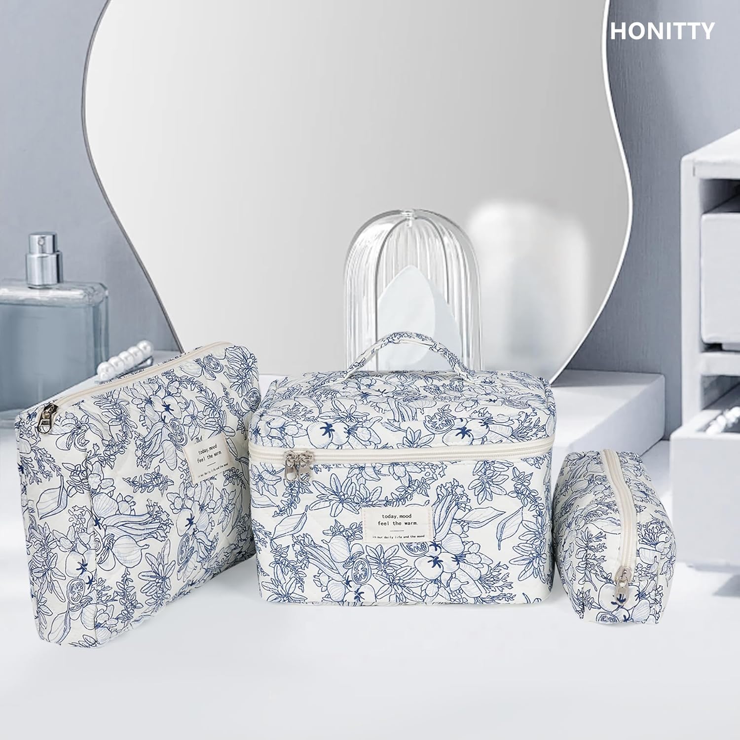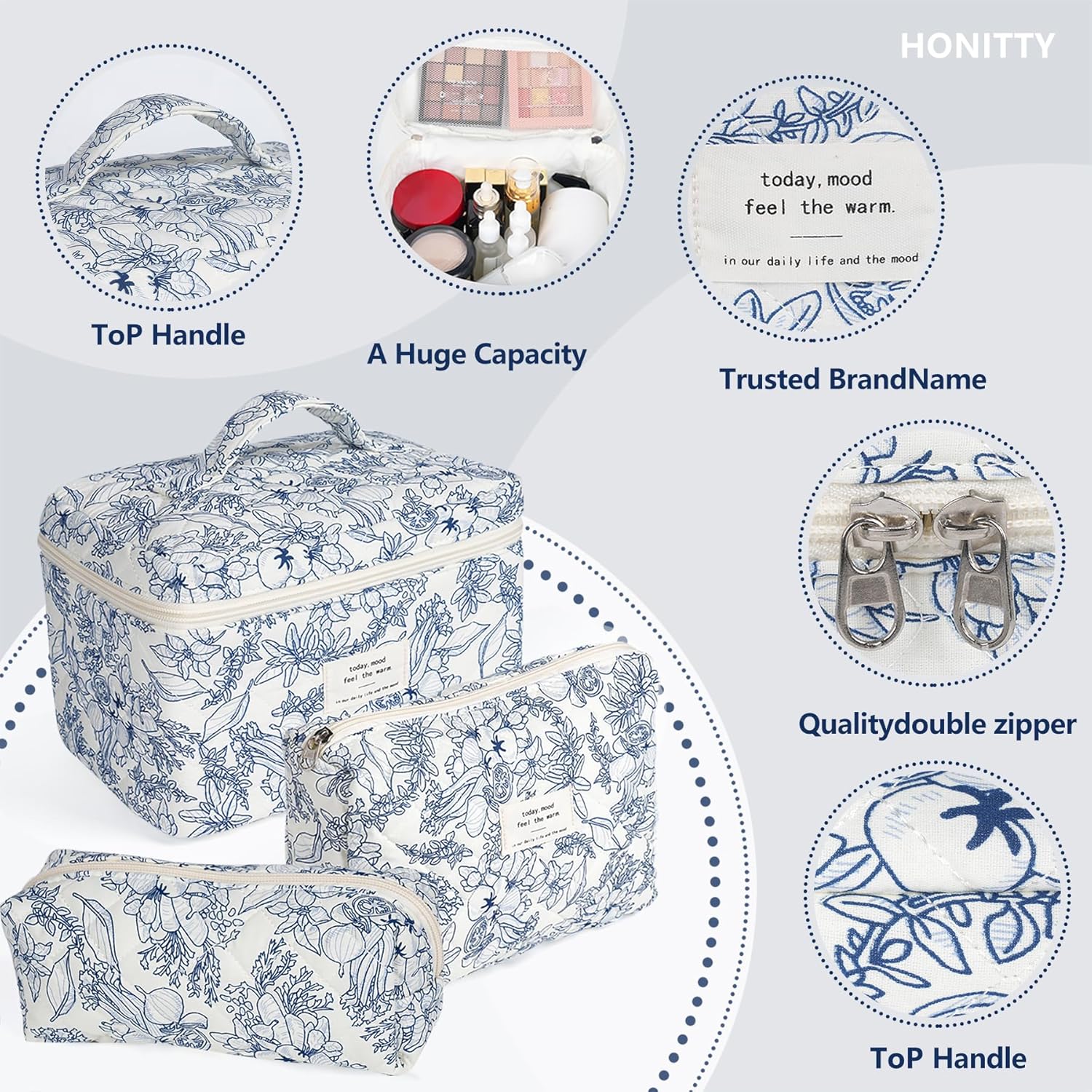 Makeup Bag,Quilted Cosmetic Bags,Large Floral Make Up Organize bag,Makeup Bag Set for Women,Flower Travel Toiletry Bag