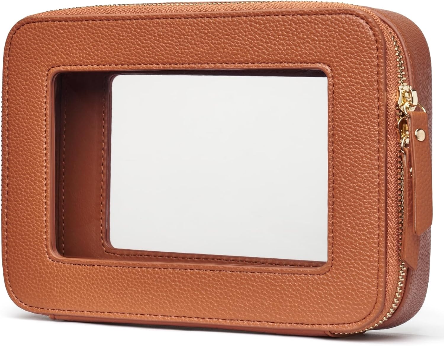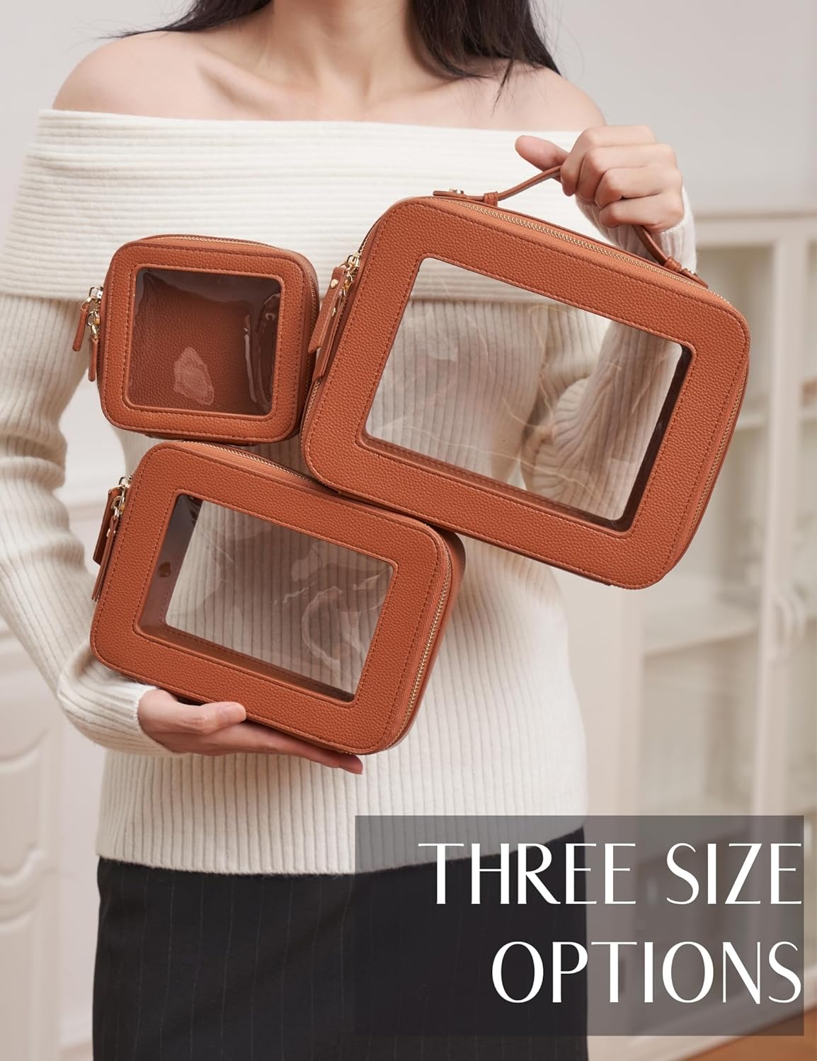 • [Premium Material and Durability] – The clear cosmetic case, both the exterior and interior, is crafted from high-grade faux leather, which is highly scratch resistant, durable and exceptionally easy to keep clean. It features a smooth zipper for secure closure, and elegant light gold metal hardware accents, adding a luxurious and sophisticated touch to the bag's overall design.