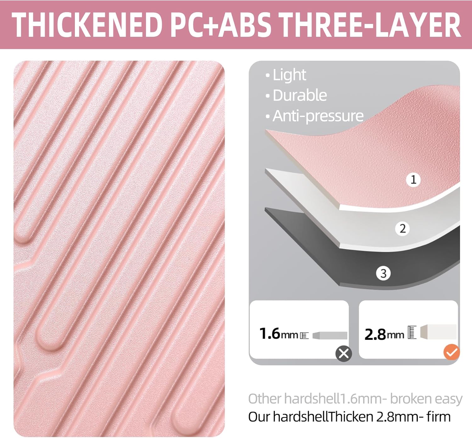 19 Inch Suitcase Hand Luggage with Front Pocket for 15.6" Laptop, 35 * 23 * 55cm, 43L, Ligthweight ABS+PC Hardshell Carry On, TSA Lock & YKK Zippers with HINOMOTO 360° Wheels, Pink