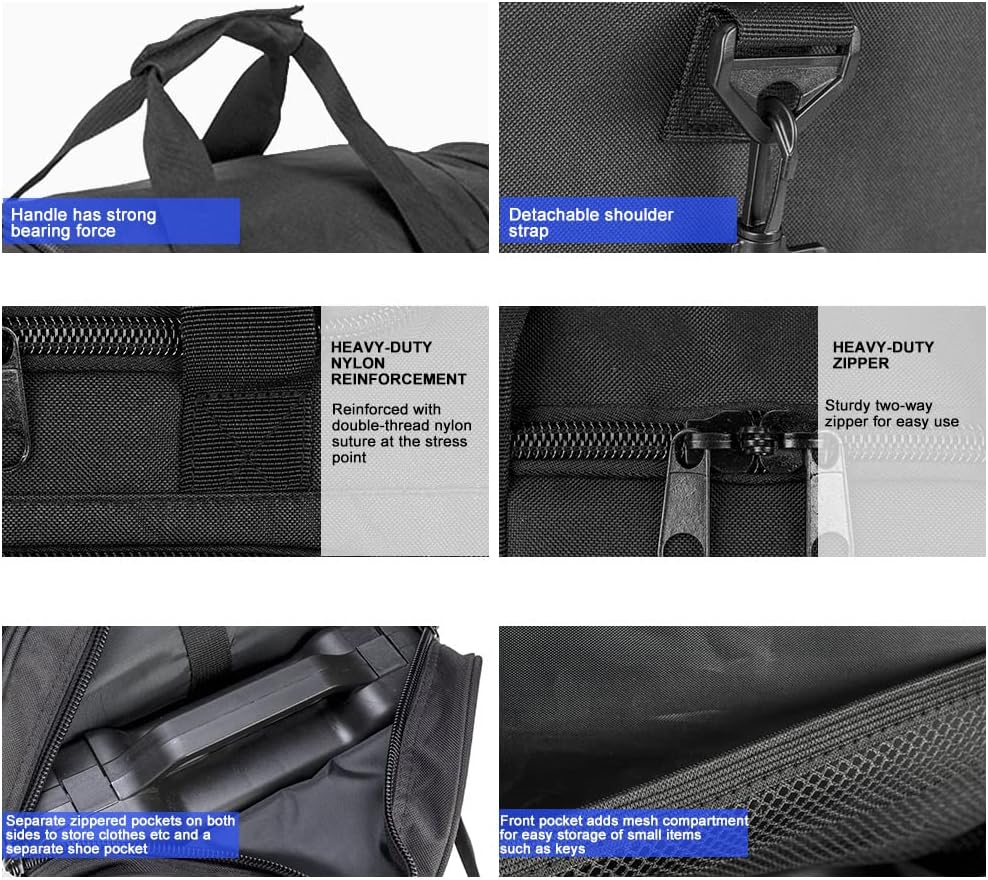 • 【Durable & Water-resistant Gym Bag】Gym bag is made of tear-resistant fabric with reinforced nylon stitching to ensure durability and performance.Sturdy zippers ensure durability and smooth operation of the gym bag.