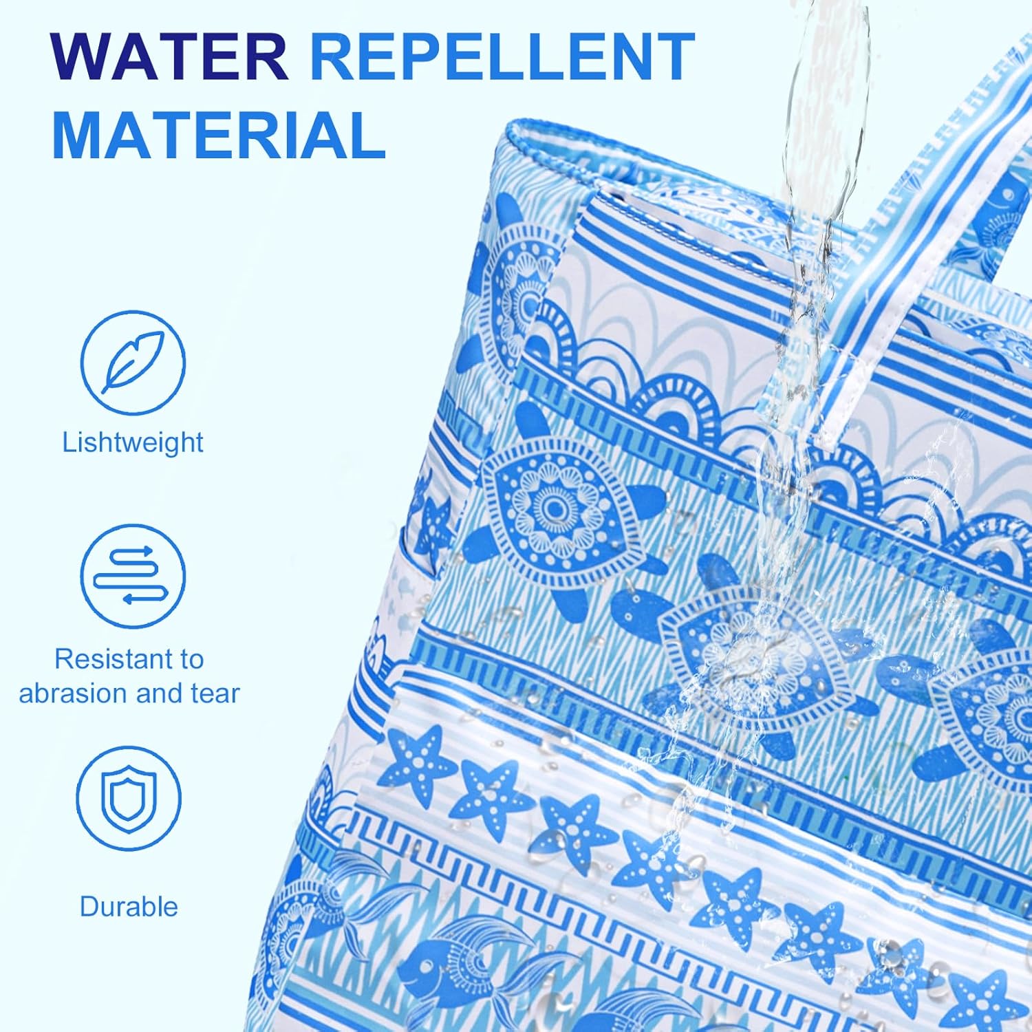 • Sandproof Beach Bag : This beach tote features high density polyester, which is sandproof, easy to clean, sand shakes right off instead of carrying it home with you.