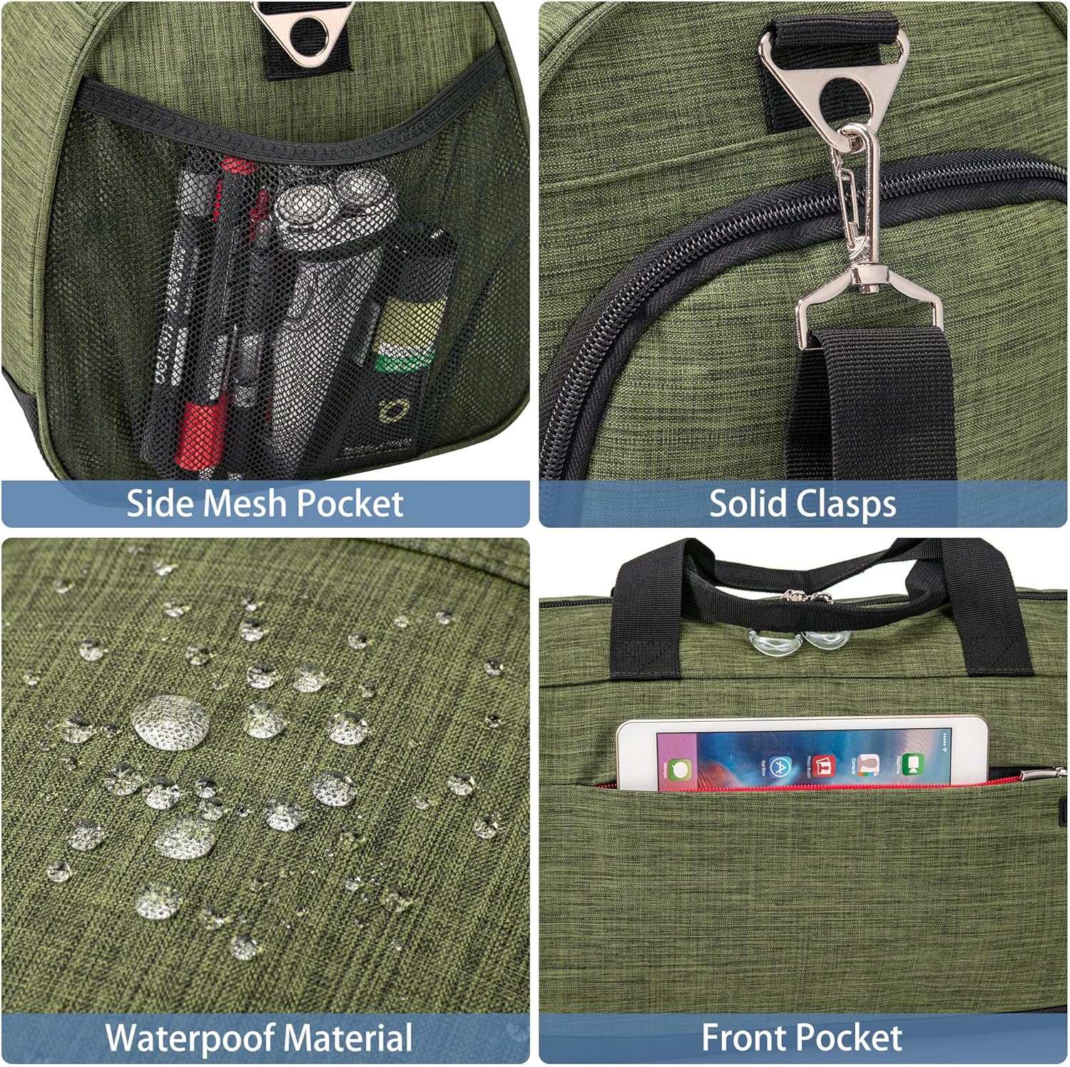 • Multifunctional pockets: one main roomy compartment to keep essentials, one inner zipper pocket for your wallet and cellphone,and it features a side access shoe compartment, separating shoes or other items from the main bag.In addition,behind the duffel bag,it comes with 1 waterproof zipper pocket behind it for separating some wet clothes or towels.