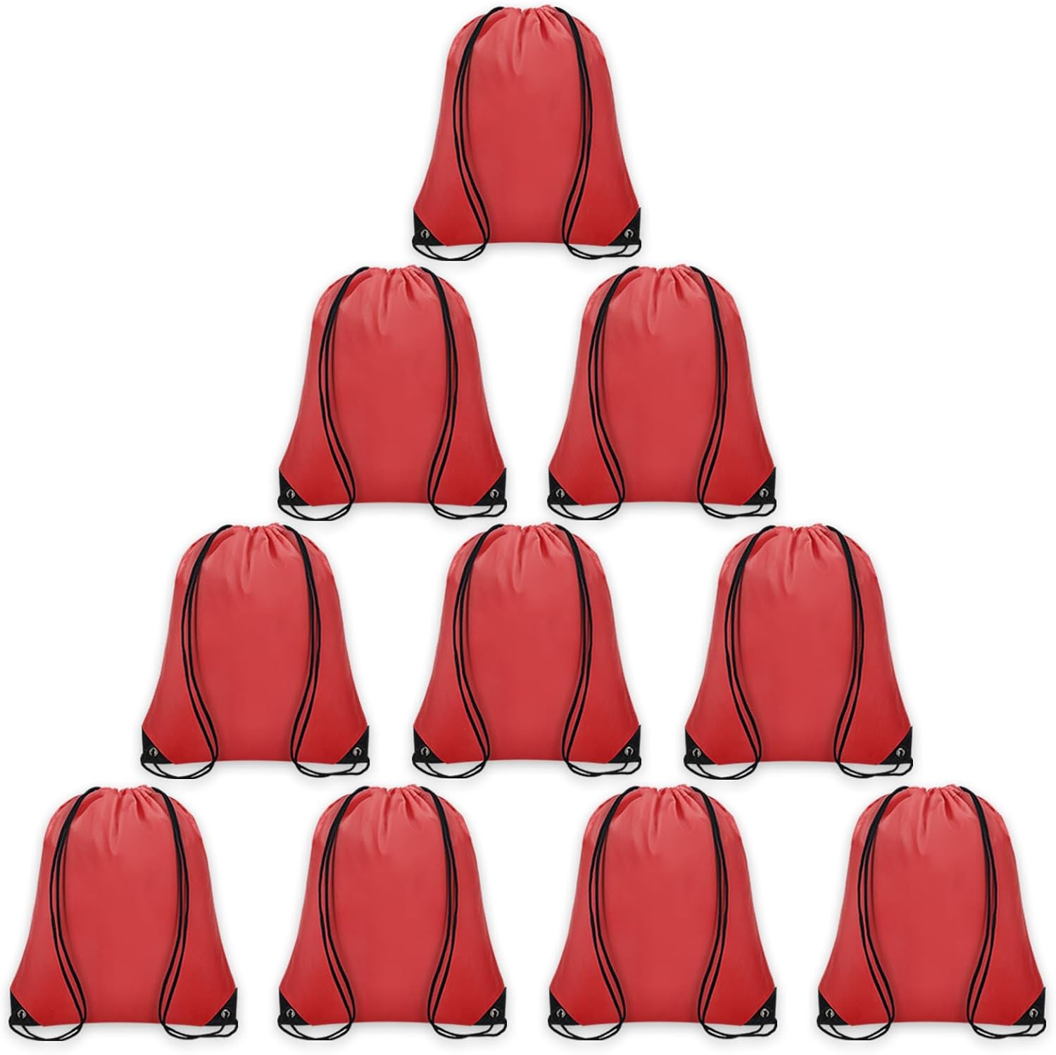10Pcs Drawstring Backpack Bulk Cinch Bag, Drawstring Bags Polyester for Gym Sports Beach Party Trip (Red)
