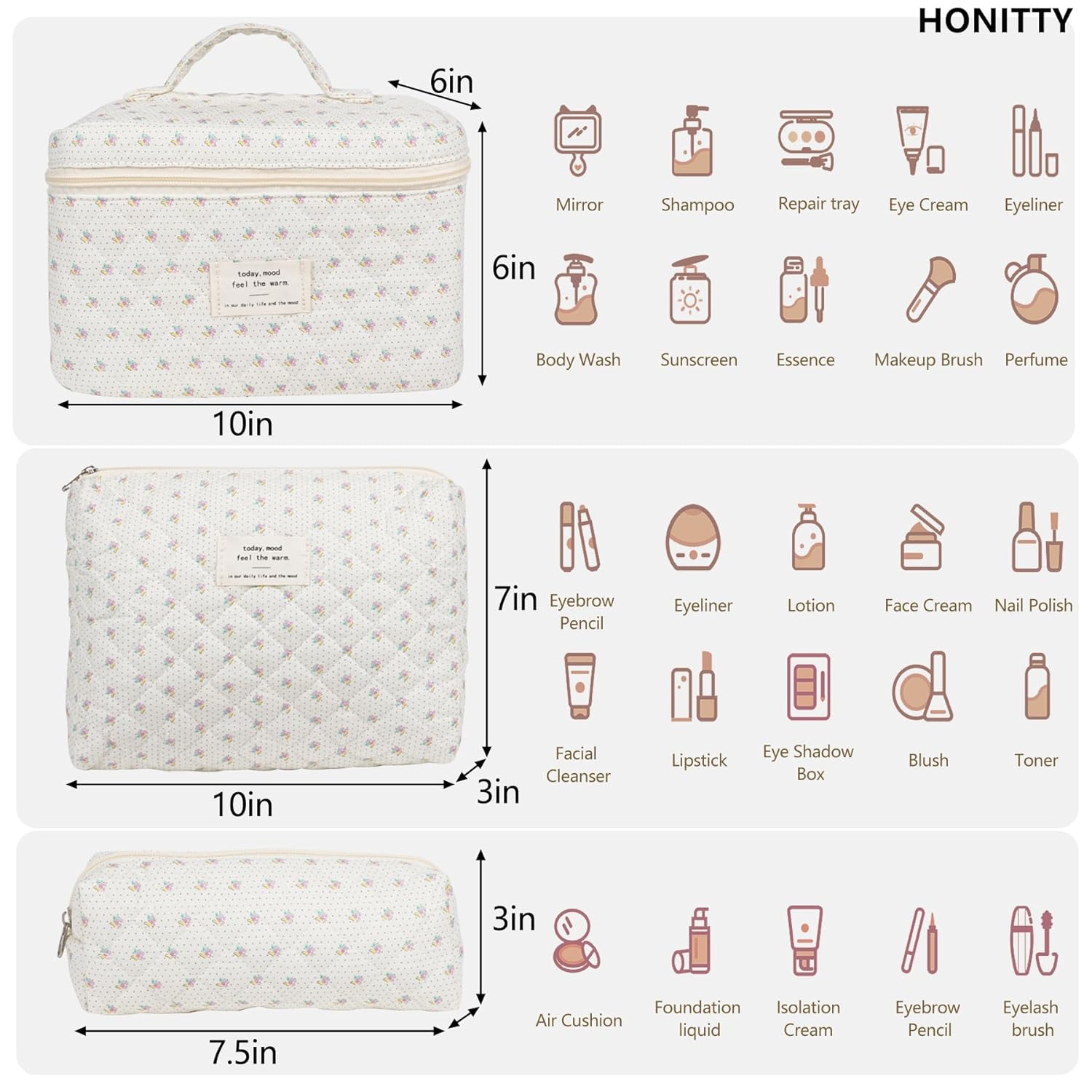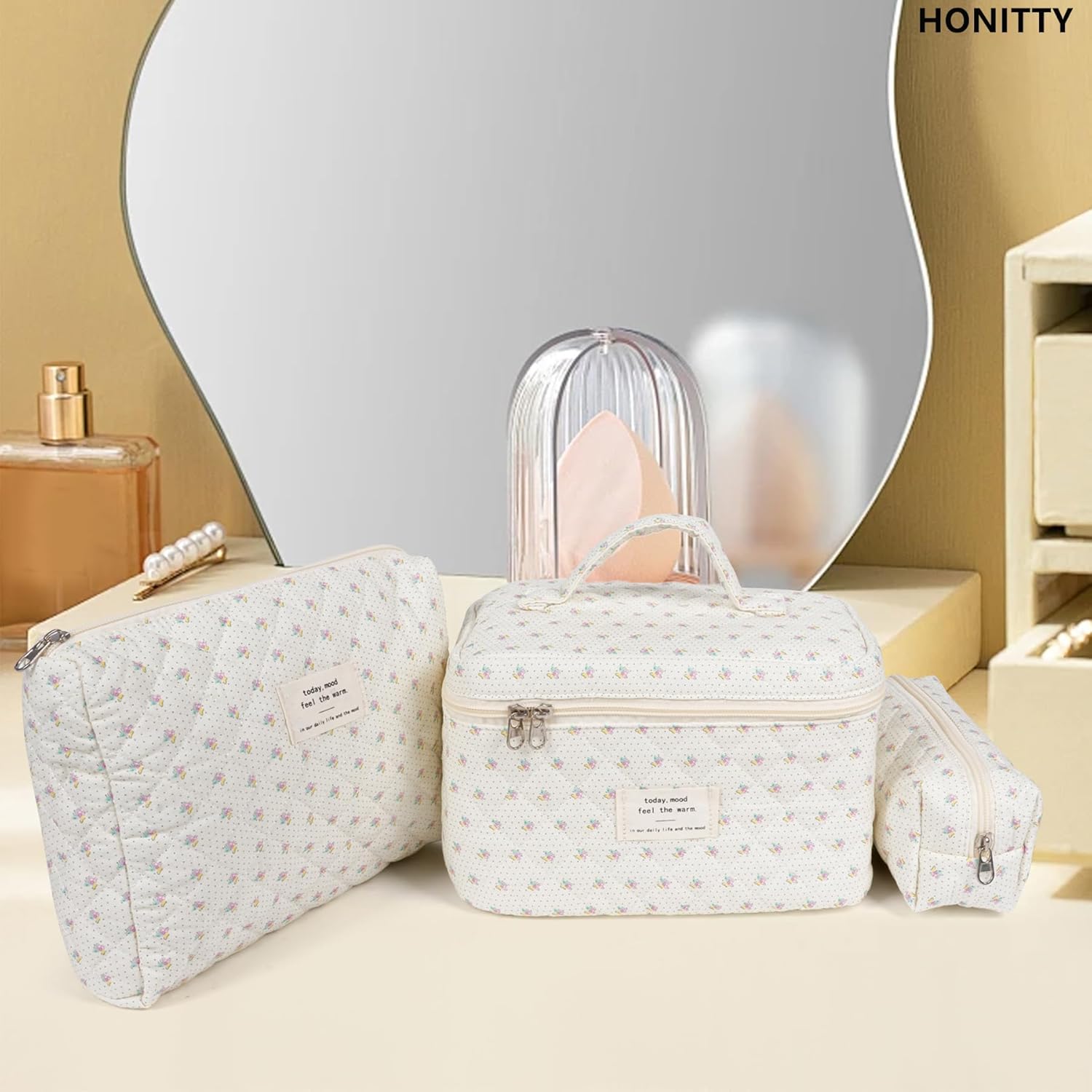 Makeup Bag,Quilted Cosmetic Bags,Large Floral Make Up Organize bag,Makeup Bag Set for Women,Flower Travel Toiletry Bag