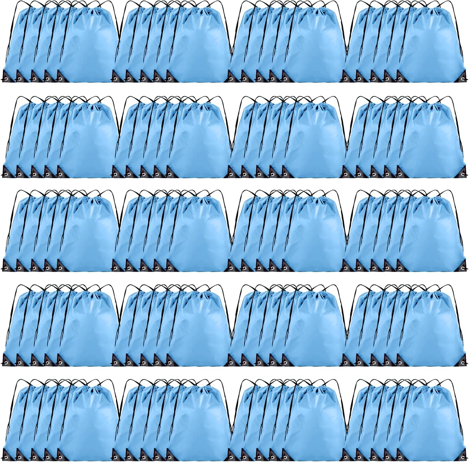 100 Pieces Drawstring Backpack Bulk Cinch Sackpack Ployster Drawstring Bags for Gym Party Trip(Sky Blue)
