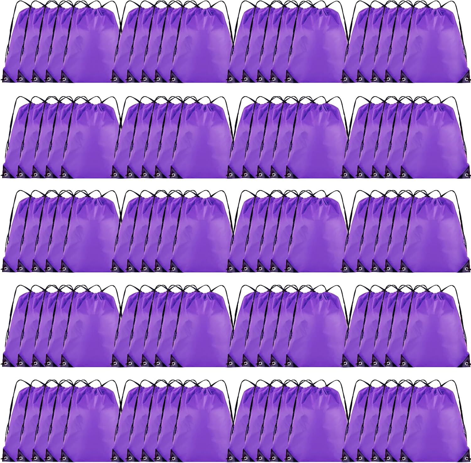 100 Pieces Drawstring Backpack Bulk Cinch Sackpack Ployster Drawstring Bags for Gym Party Trip(Purple)