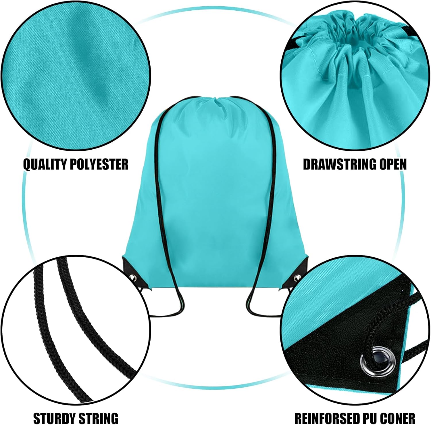 100 Pieces Drawstring Backpack Bulk Cinch Sackpack Ployster Drawstring Bags for Gym Party Trip(Aqua)