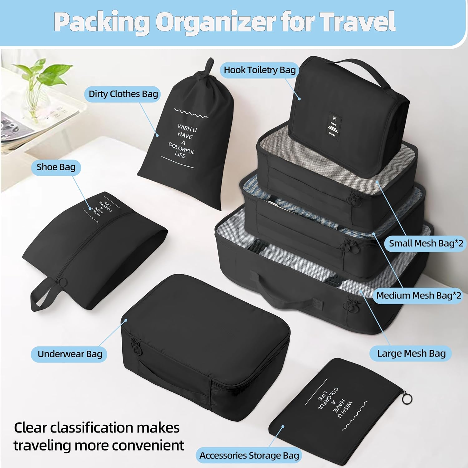 • 【SAVE SPACE - TRAVEL ACCESSORIES】Packing cubes for suitcases Perfect for air travel, road trips, cruises, outdoor camping, and kids summer camps. Organize clothes and accessories, save space in your luggage, separate dirty clothes from clean clothes. Makes packing easier and more organized.Suitcase organizer bags set suitable equipped with suitcases of various sizes from 18 to 32 inches, with full range of storage.suitable for storage in suitcases and wardrobe box drawers.