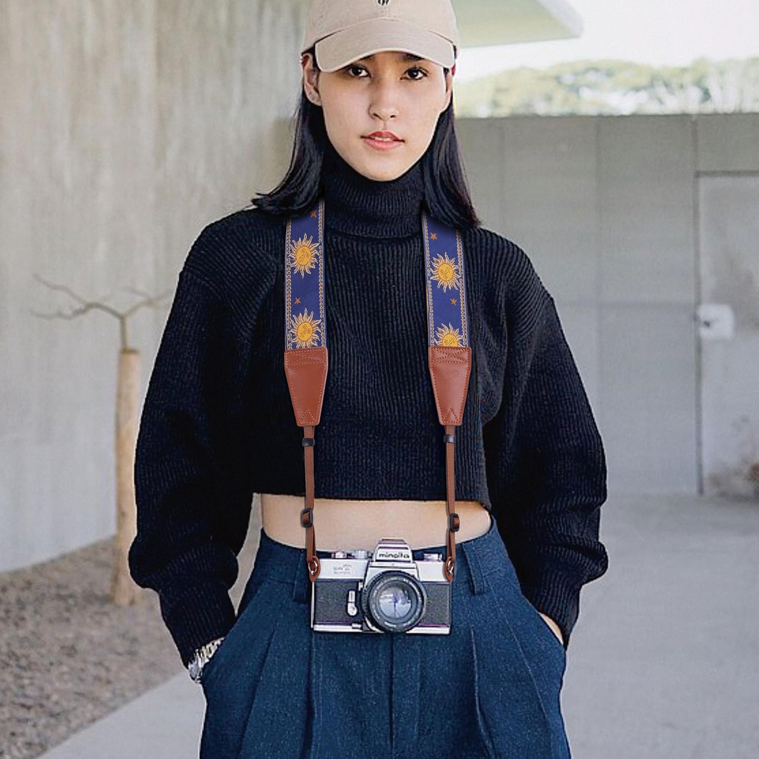 • 📷WIDE AND COMFORTABLE : The camera strap is made of high quality cotton, retro embroidery process , 2” (5 cm) ultra-wide cotton strap design , more breathable , Wear around your neck , cross body, or over one shoulder ! The wide , comfortable cotton strap will Relieve the pressure on your shoulders and neck when using the camera for extended periods of time,making you more comfortable to use.