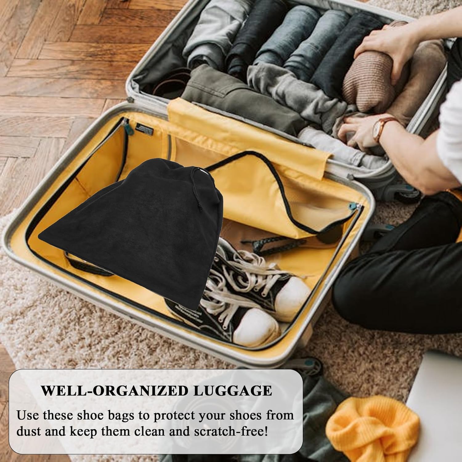 LAKE OF FIRE 4-Piece Travel Shoe Bags for Packing, 17.7" x 13.8" Dustproof Shoe Bags - Flannel Shoe Pouch with Drawstring Closure,Washable & Reusable(Black)